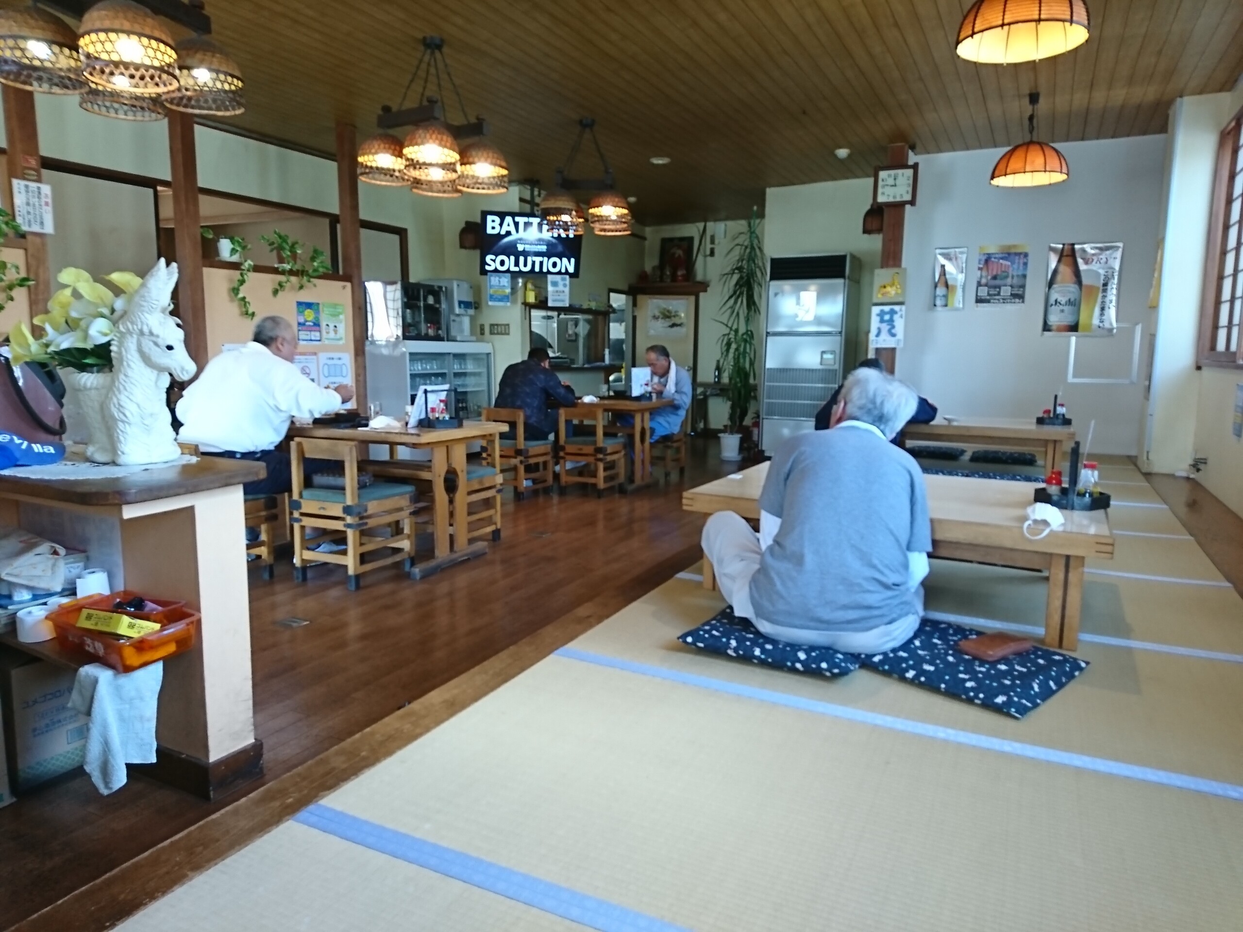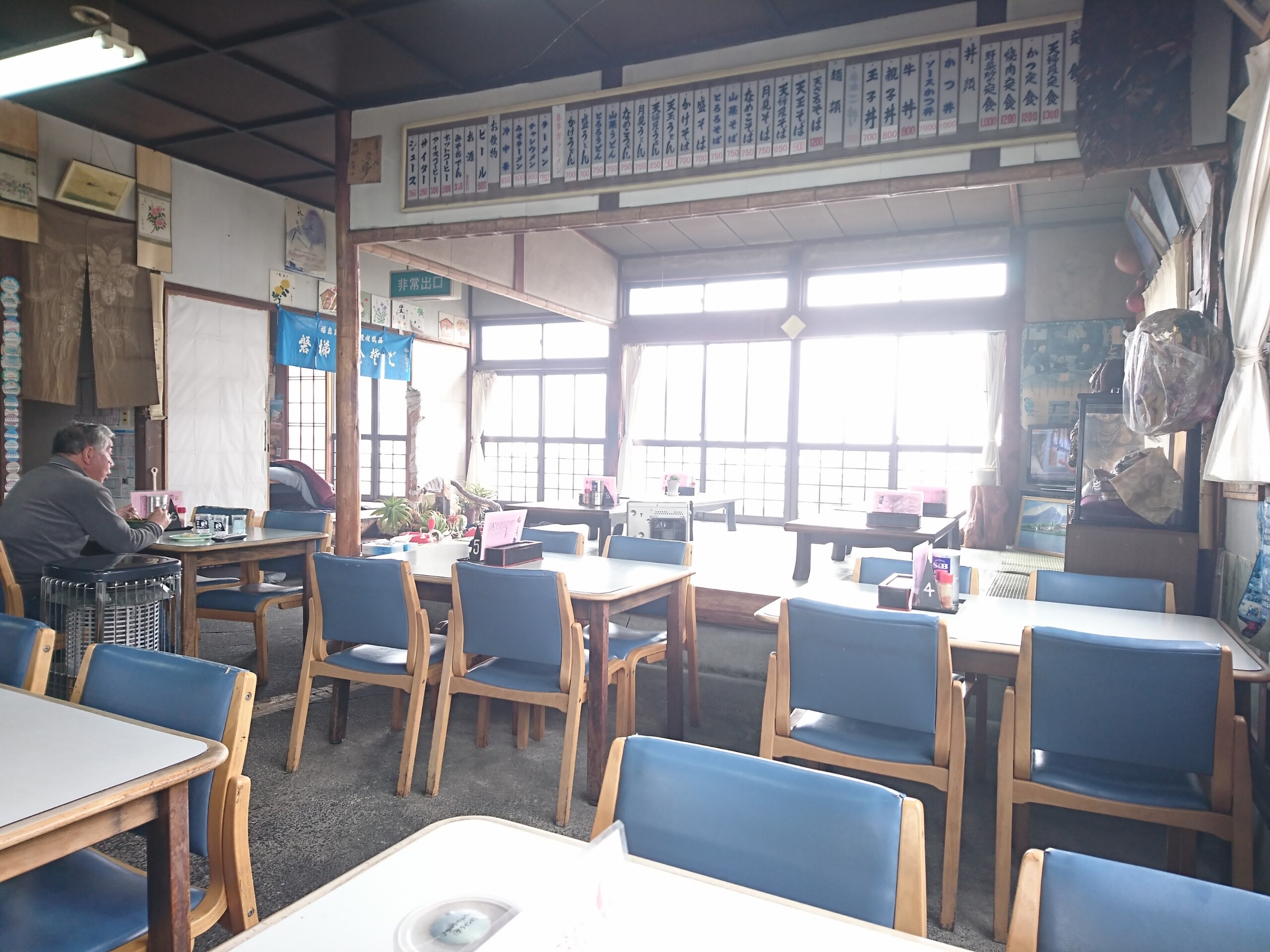 店内はこんな感じで内装が綺麗なので改装したっぽいですね。座席は4人掛けのテーブル席が6席に手前にお一人様用の相席の6人掛けの長テーブルがありました。開き戸の奥には座敷席があり、また2階は団体客用の宴会席になってるみたいです。