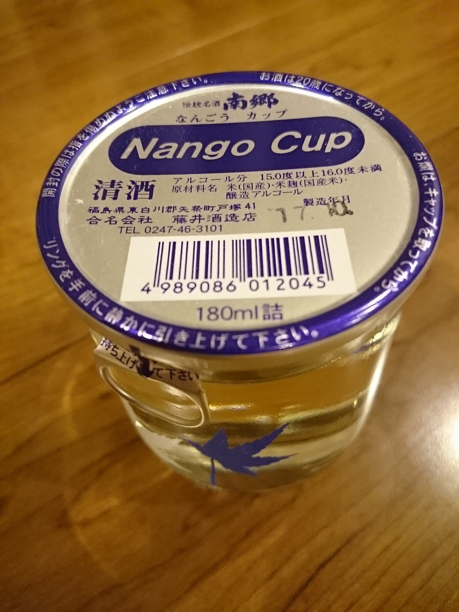 今日は福島県矢祭町にある酒屋さん・酒のしのだで225円で購入した、同町の酒蔵・藤井酒造店の酒「南郷・なんごうカップ」を飲みました。酒は糖類無添加の普通酒で飲んだ感想は、濃醇な甘口の酒で後味はアルコール辛さと苦味が口の中に残りますが、普通酒の割りに旨味もそこそこ感じられ美味しかったです。