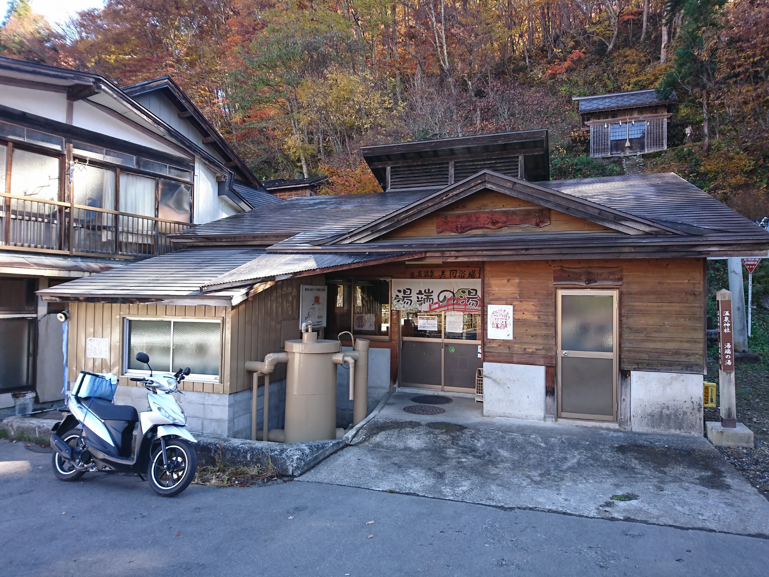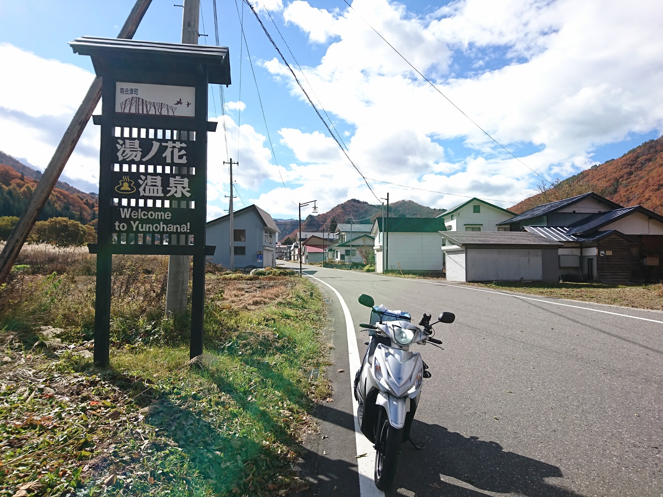 肌寒くなりましたが、土曜日に愛車のアドレス110で福島県南会津町の湯ノ花温泉に行きました。