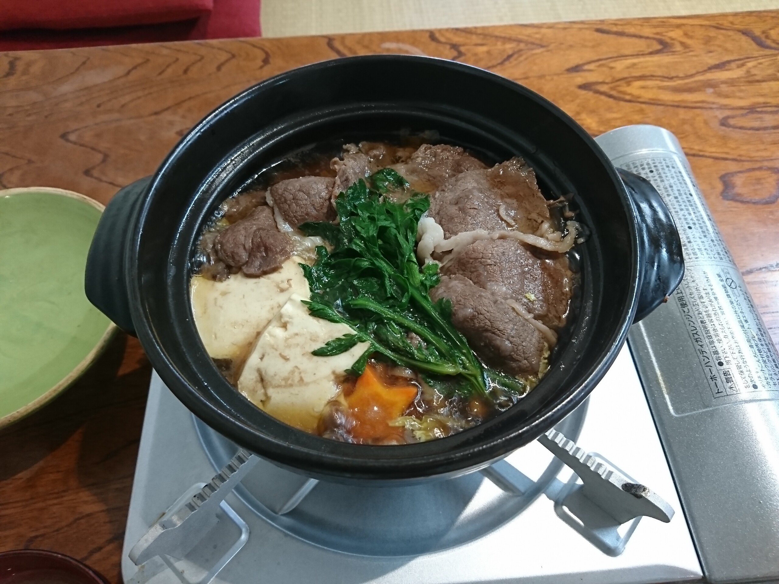 まず馬肉以外の具を鍋に入れて煮ます。馬肉は煮込むと硬くなるので、しゃぶしゃぶみたいにして全体的に色が変わる頃が食べ頃で生卵に付けて頂きます。新鮮な馬カルビは柔らかくてメチャ美味しくご飯が進みます!肉が4切れと少なかったが、美味しかったので満足でした。でもせめて8切れくらいは食べたいですねぇ〜^^