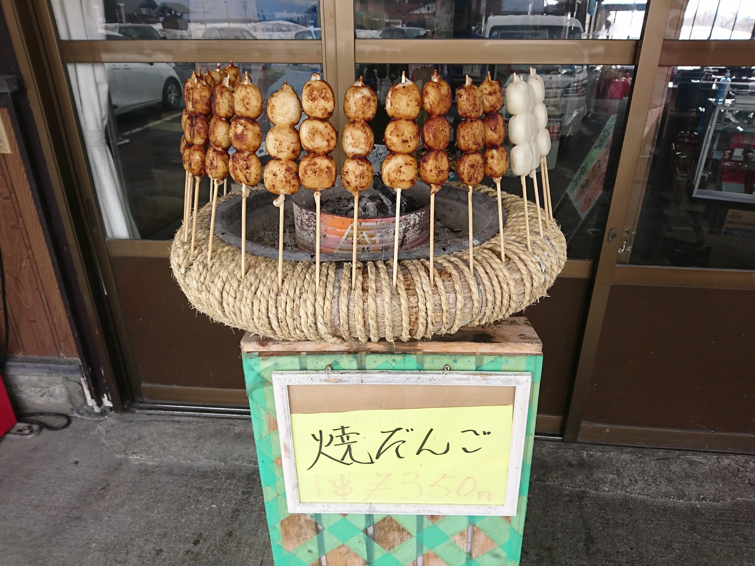 店の前ではなんか干からびた感じでしたが、炭火で団子が焼かれていました。1串350円