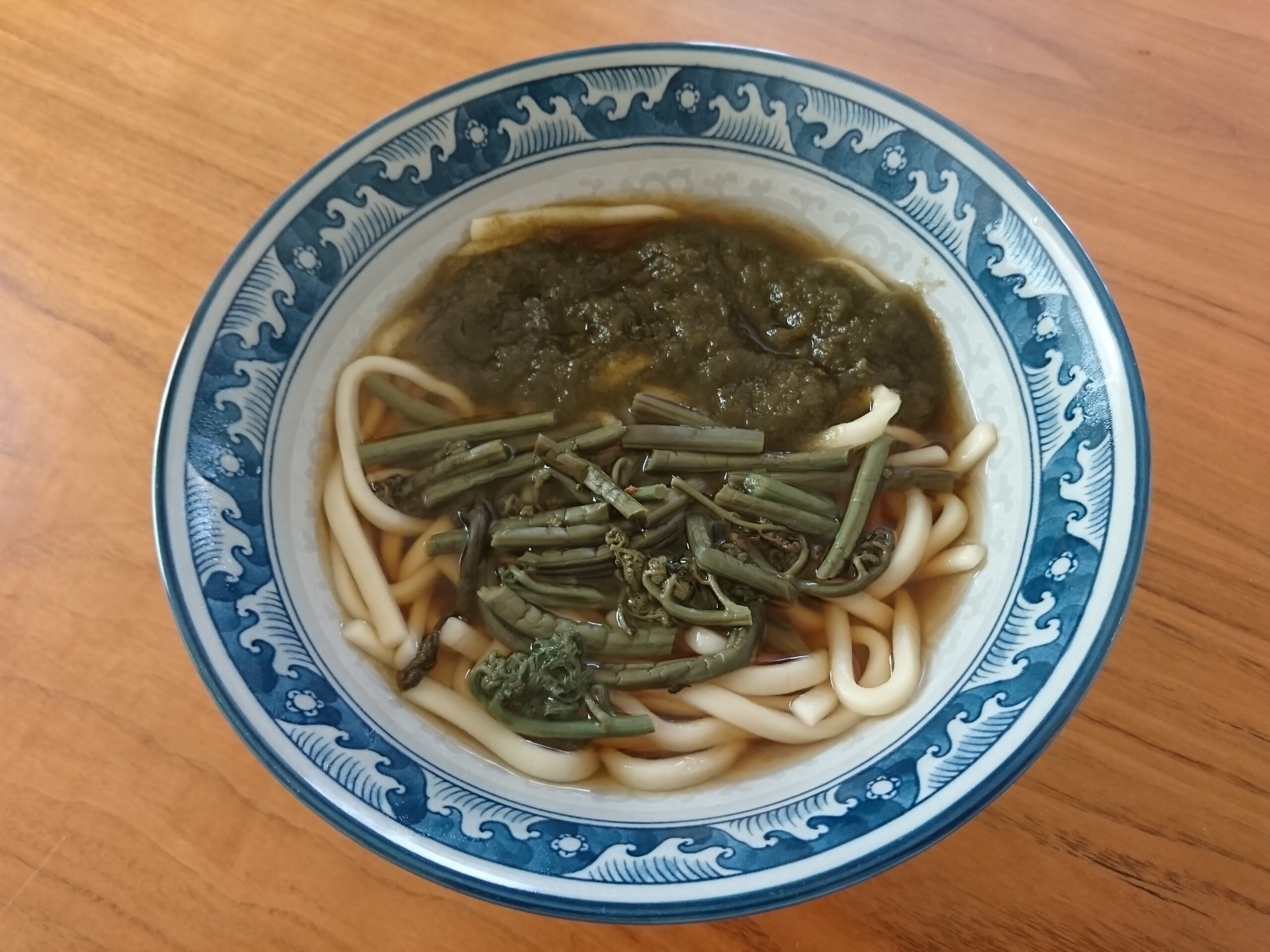 飲んだ後の〆はうどんに入れて山菜うどんにしました。やっぱ飲んだ後は汁のある麺類が良いですねぇ〜 メチャ美味しかったです。