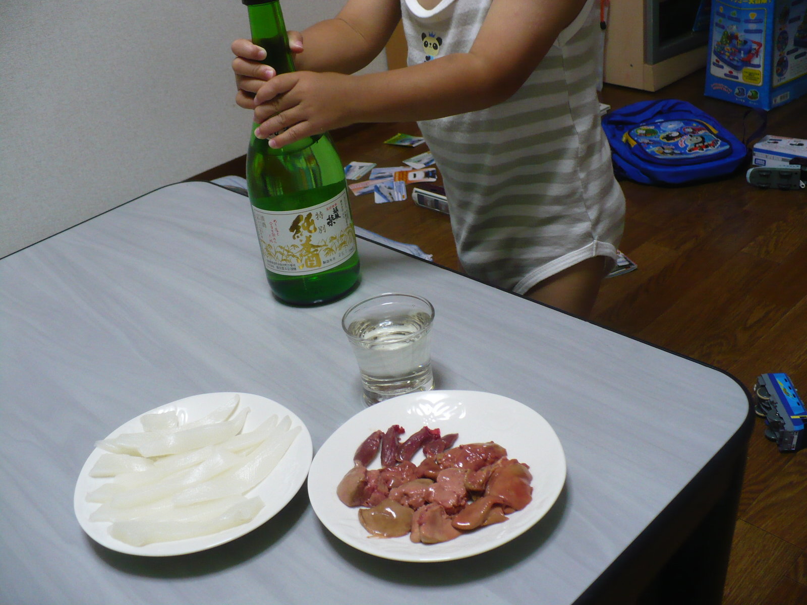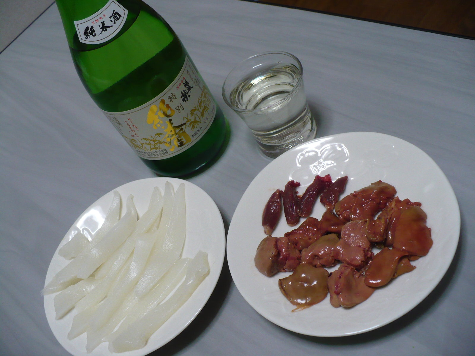 今日の酒の肴は盆休みに実家に帰った時に猪名川町の中元かしわ店で買って冷凍して持ち帰った鶏レバー(心臓付き)を解凍して造りで食べました。さすがに一度冷凍してしまったので鮮度が少し落ちてしまい細胞が潰れてプルンッとした食感がなくなりましたが、白レバーに近いレバーだったので濃厚な旨みは健在で格別でした。あぁ 新鮮な鶏レバー 冷凍しても美味しいですね。 もう一品はイカの造りです。