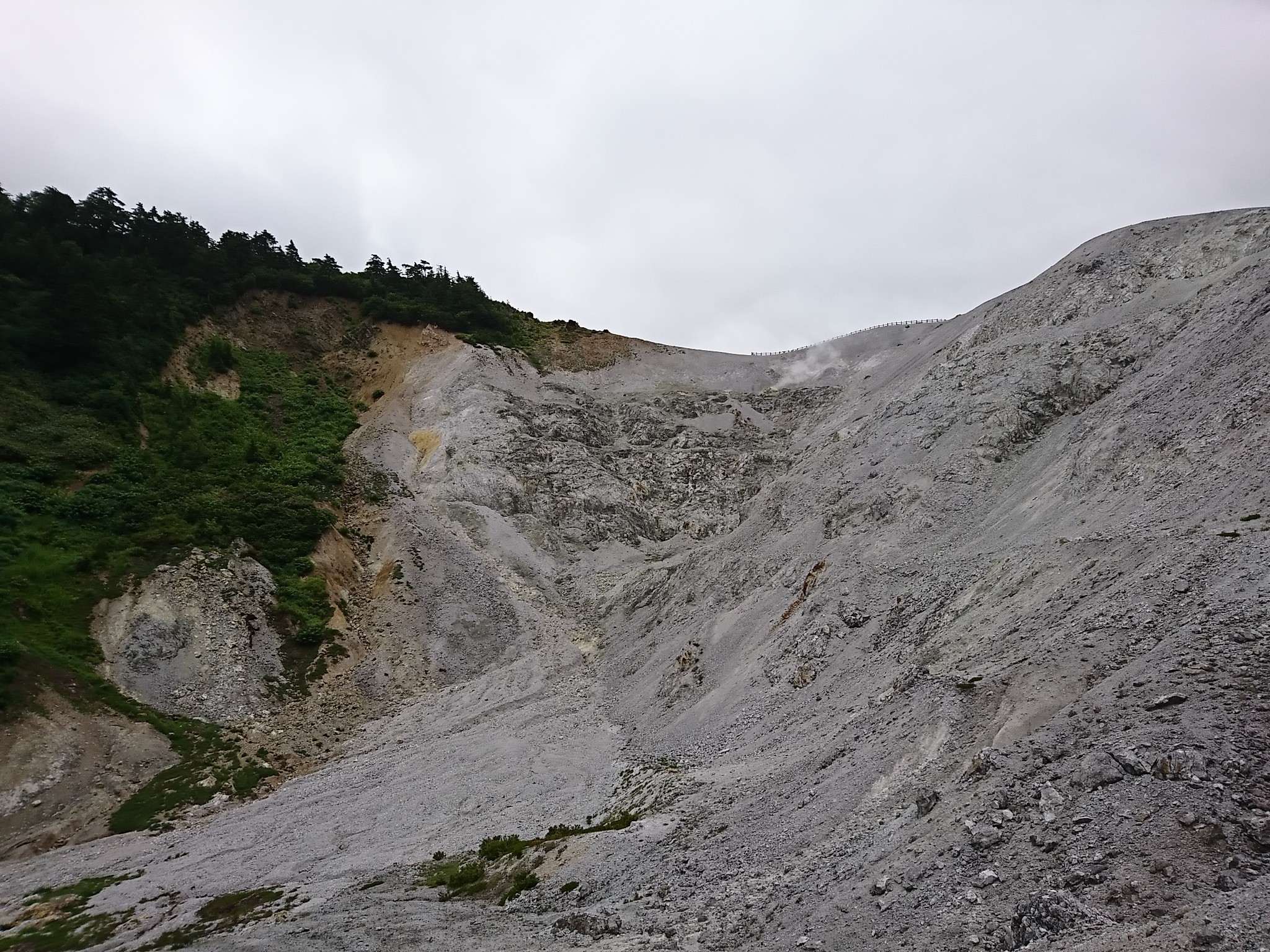 酸性の強い場所で硫黄系の火山ガスが噴出していて、成分の強い所では植物が生えません。