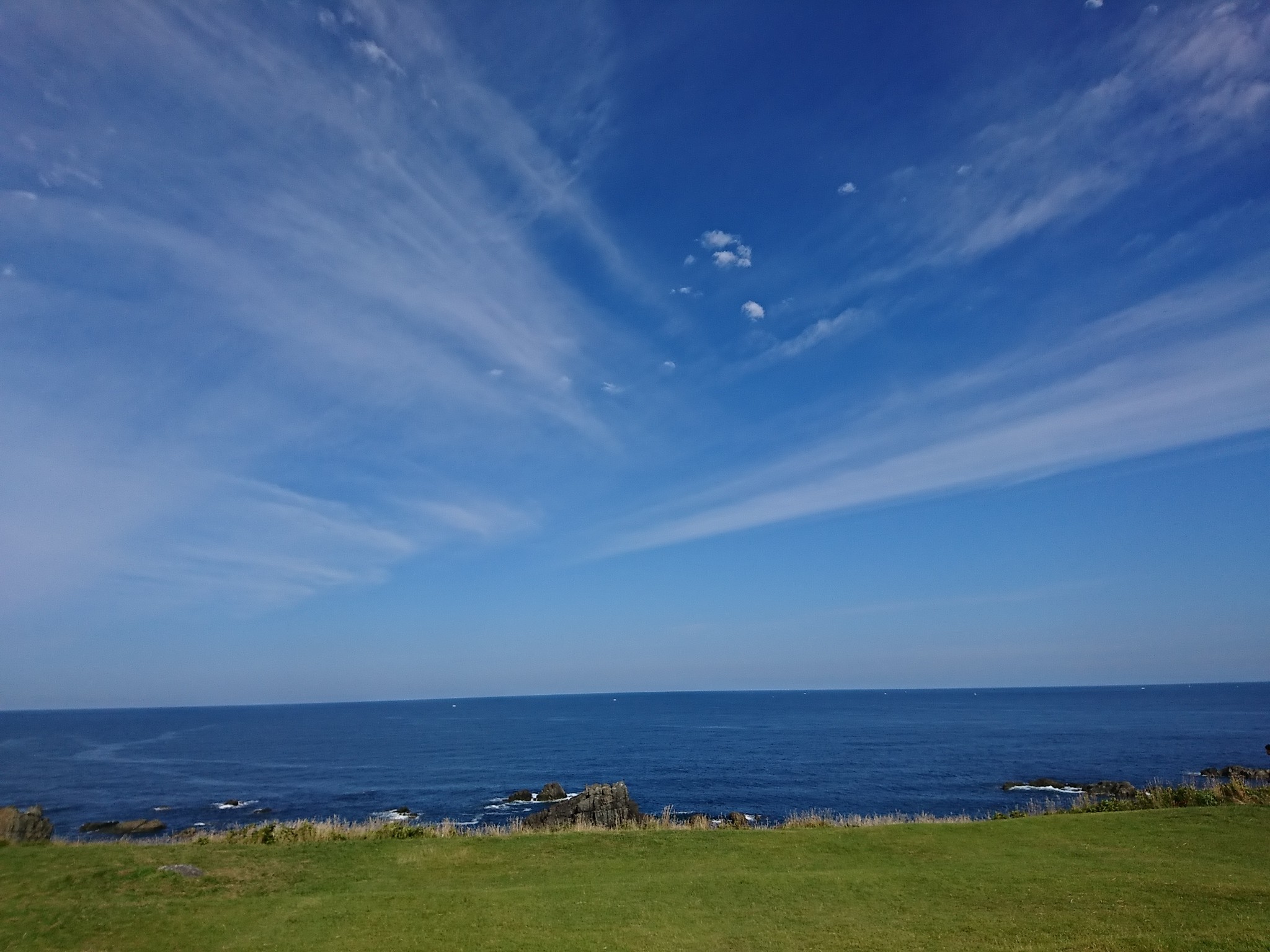 灯台の上からは日本海が綺麗に見えます。 なんか地球が丸く感じました。^^