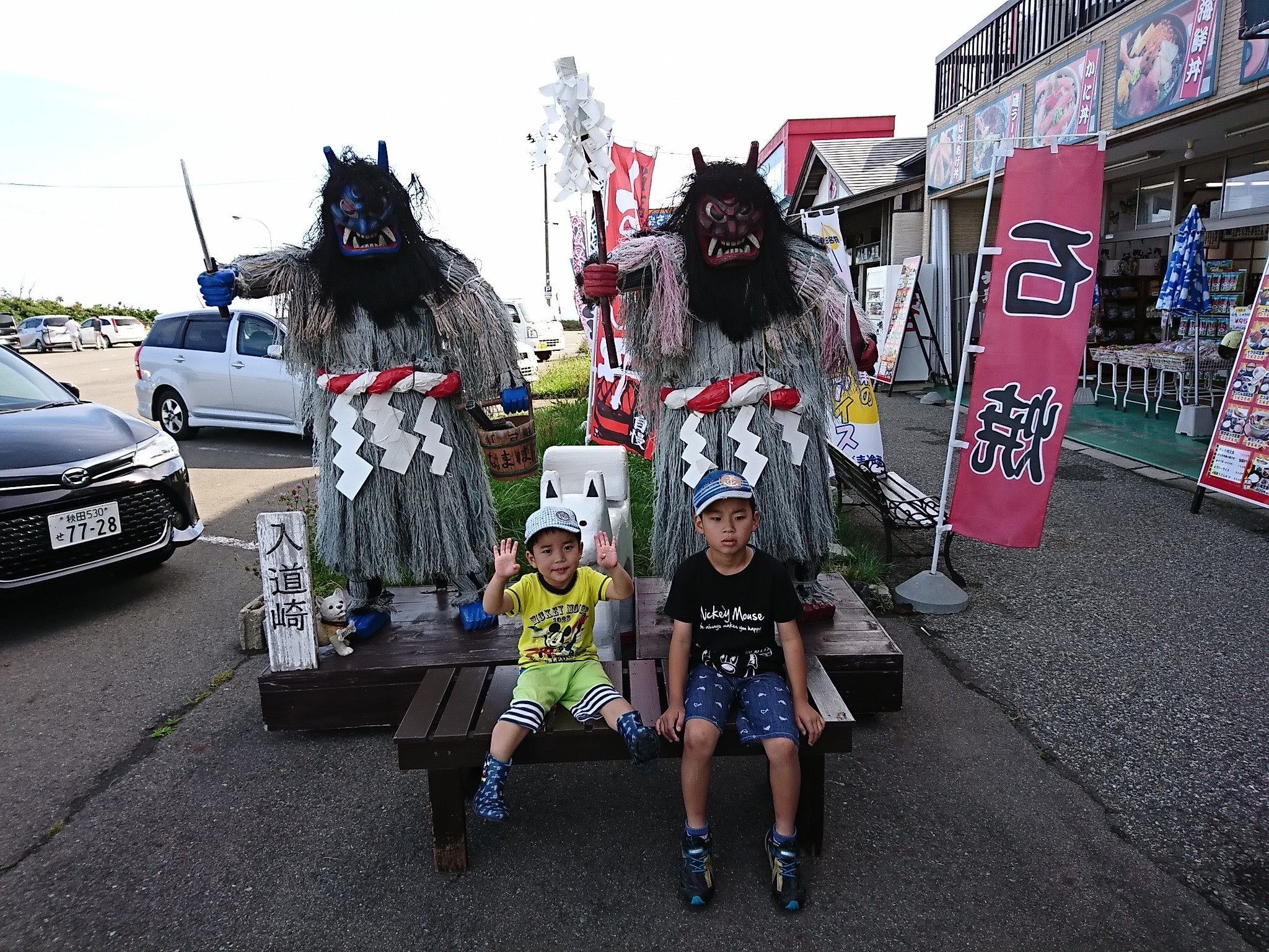 秋田の旅 2日目は山側から海側に夜中の間に移動し、なまはげが有名な男鹿半島に来ています。男鹿市に入ると巨大ななまはげがお出迎え!^^