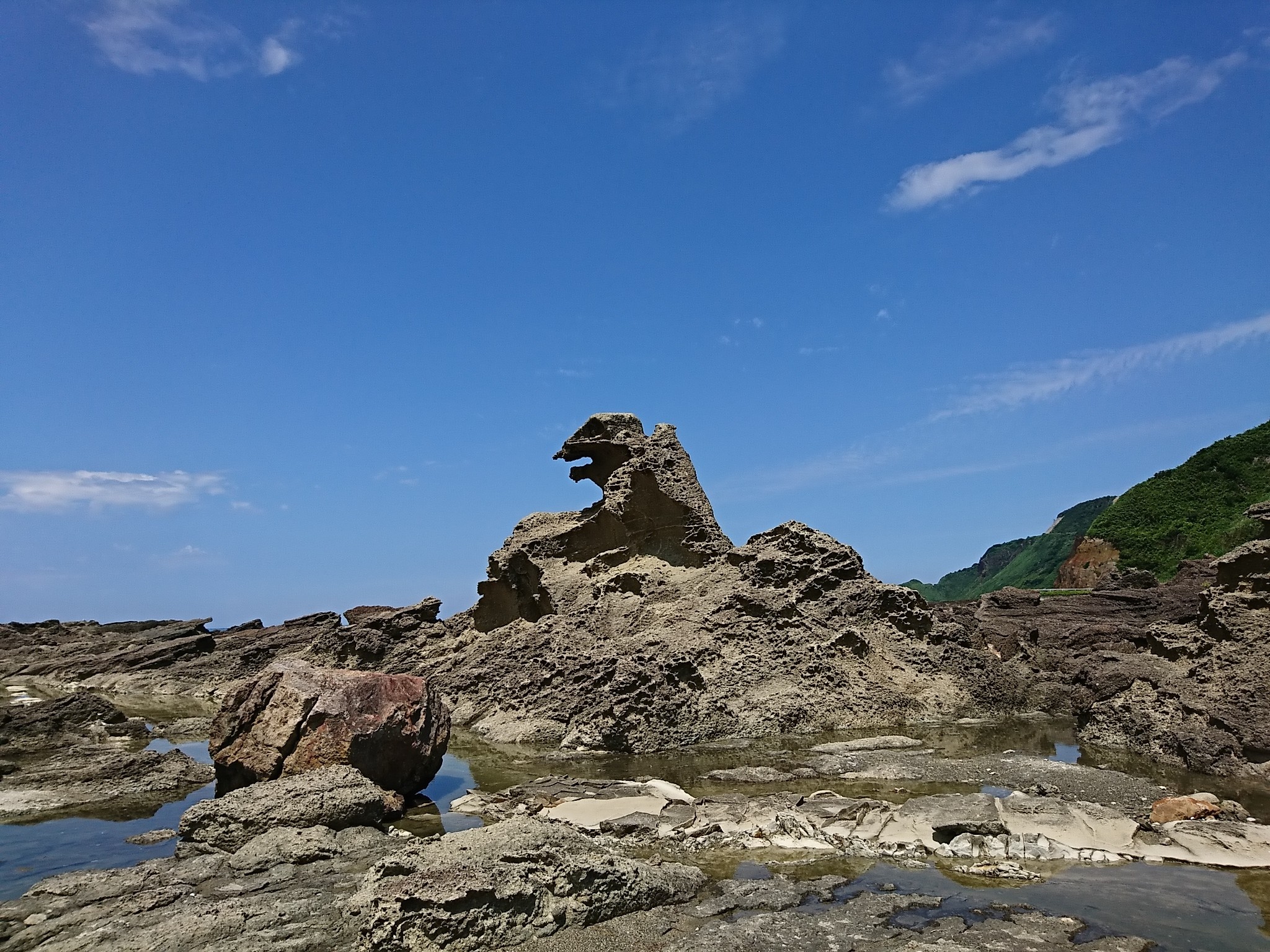 朝食後は、ゴジラ岩を見に行きました。まぁ何となくゴジラに似てる様な気もしますが、波や風雨に曝されて自然にできたのは凄いですね。