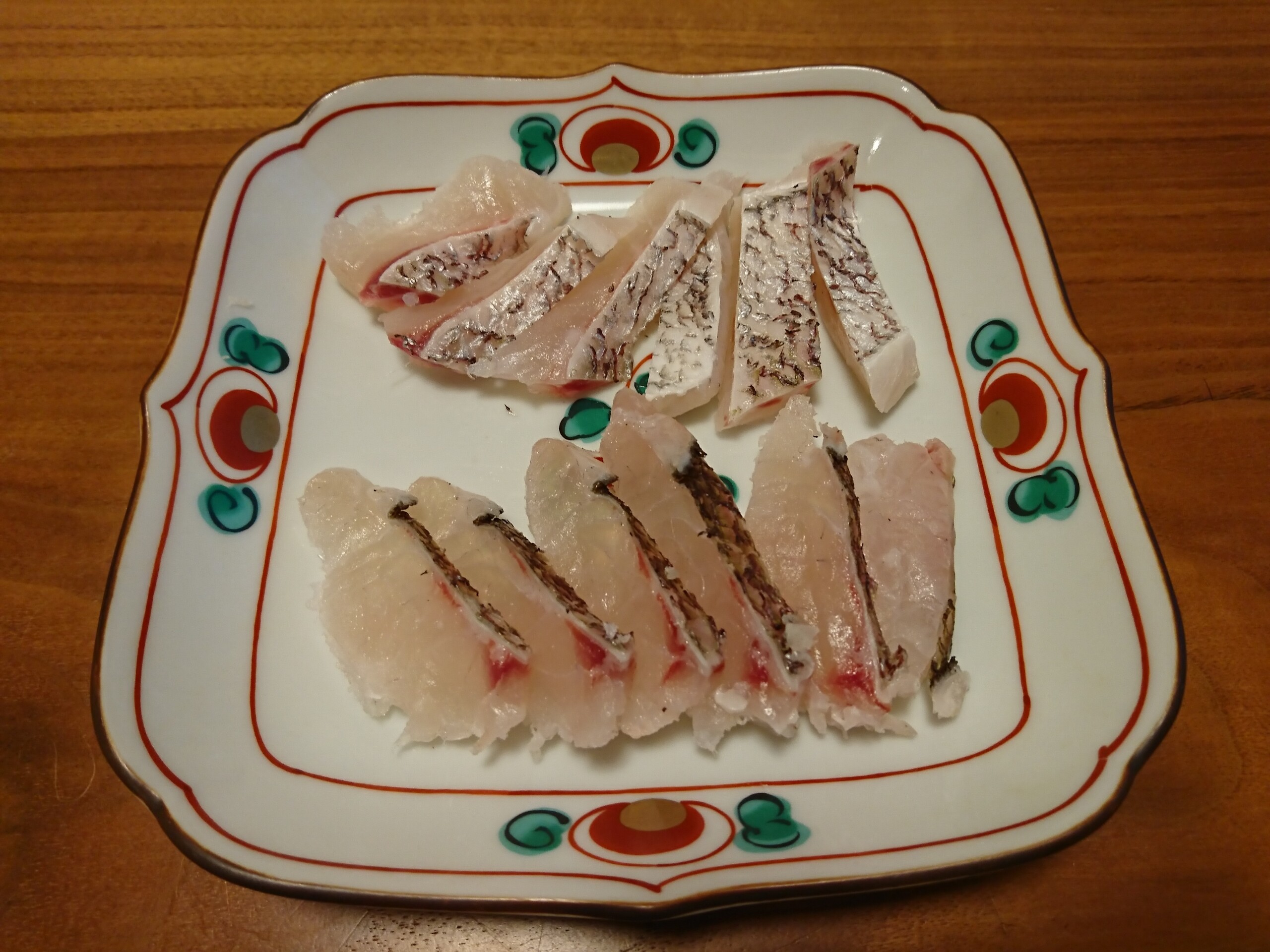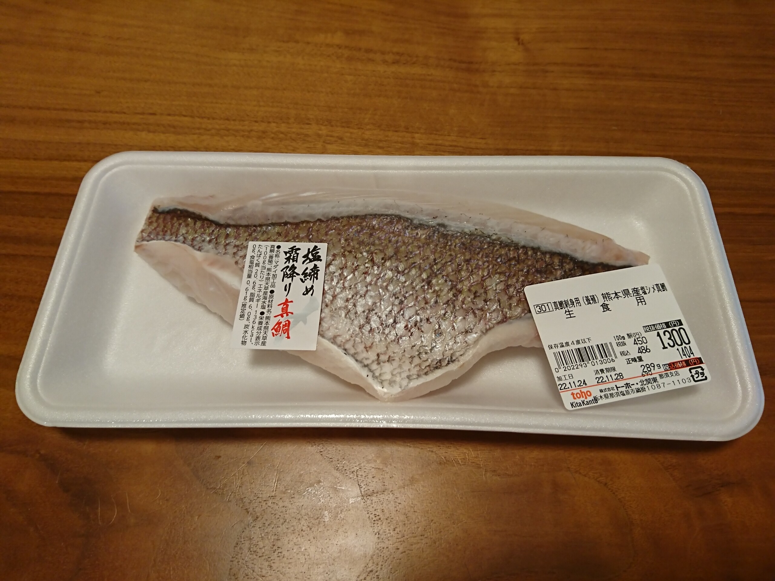 今日の酒の肴は熊本県天草産の塩締め霜降り真鯛です。