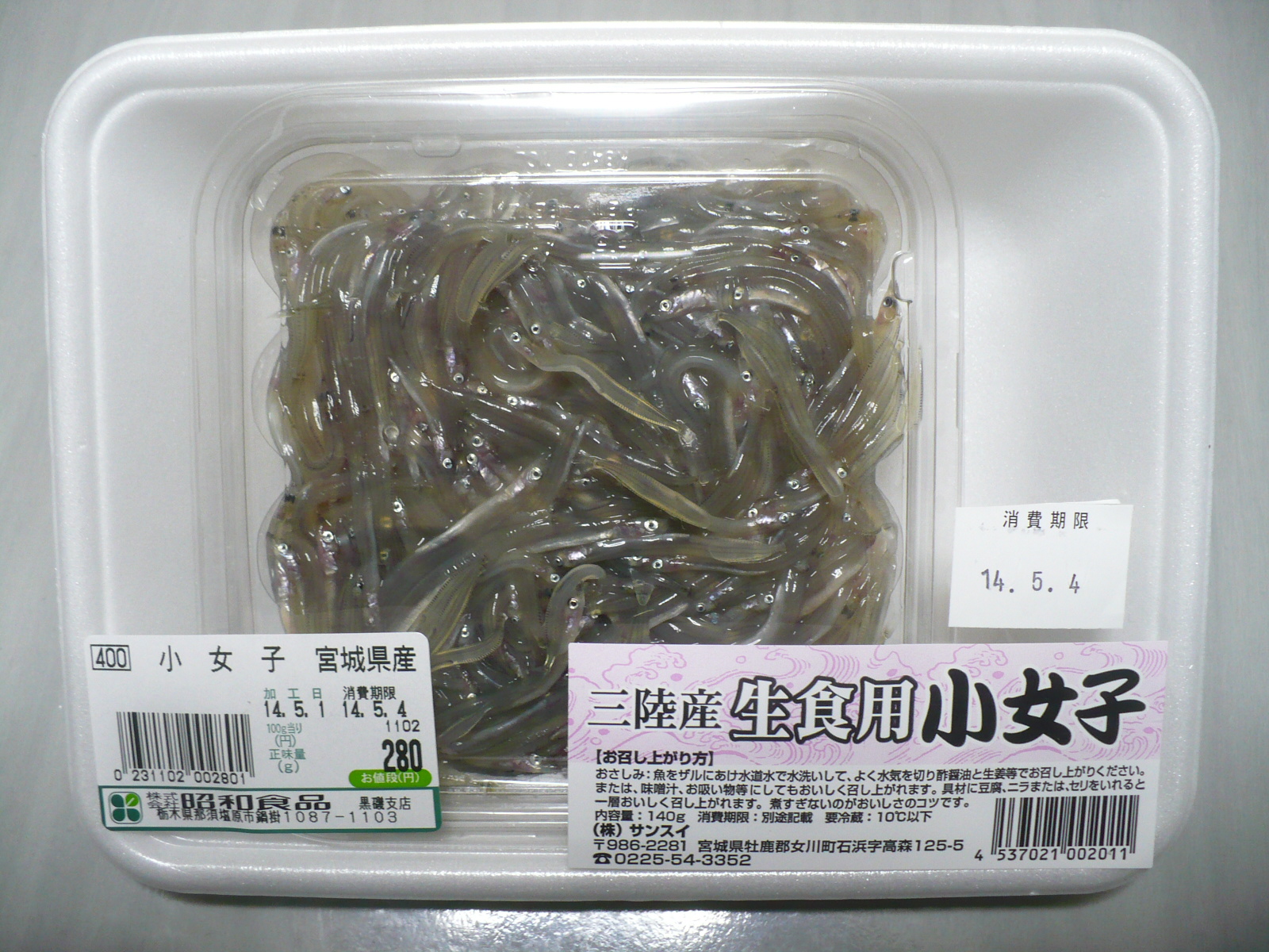 小さい女の子と書いて小女子(こうなご)と読みます。東日本ではこの呼び名だが、西日本ではイカナゴです。関西出身の私にとってはイカナゴの方が親しみを感じます。食べ方は刺身用だったので、酢醤油に生姜を溶いて洗って生で頂きました。食べた感想は内臓の部分が少し苦いですが、噛めば後から旨みと甘みが出てきて美味しかったです。関西では釘煮と言って佃煮にして食べますが、生でもなかなかいけますね。