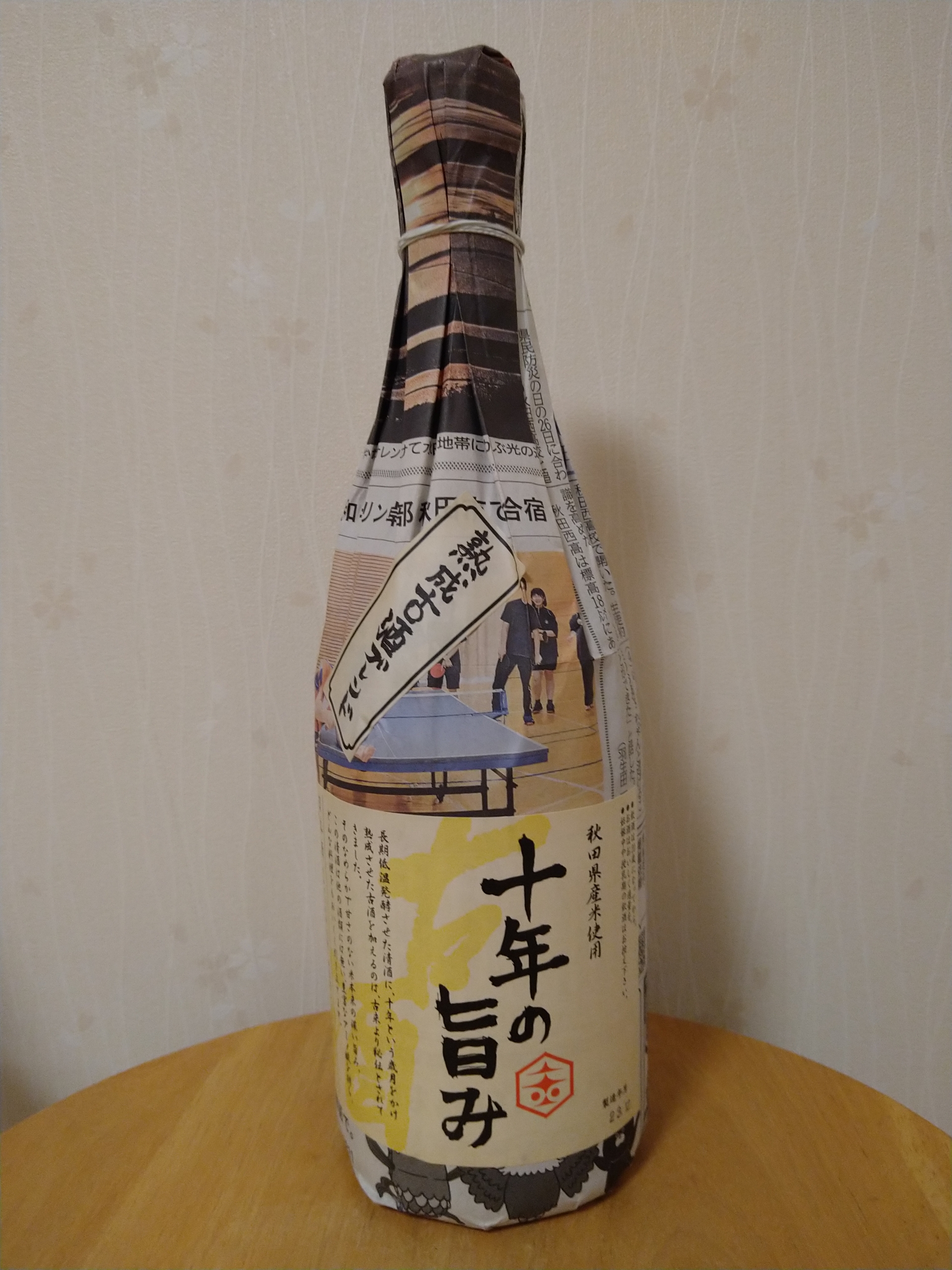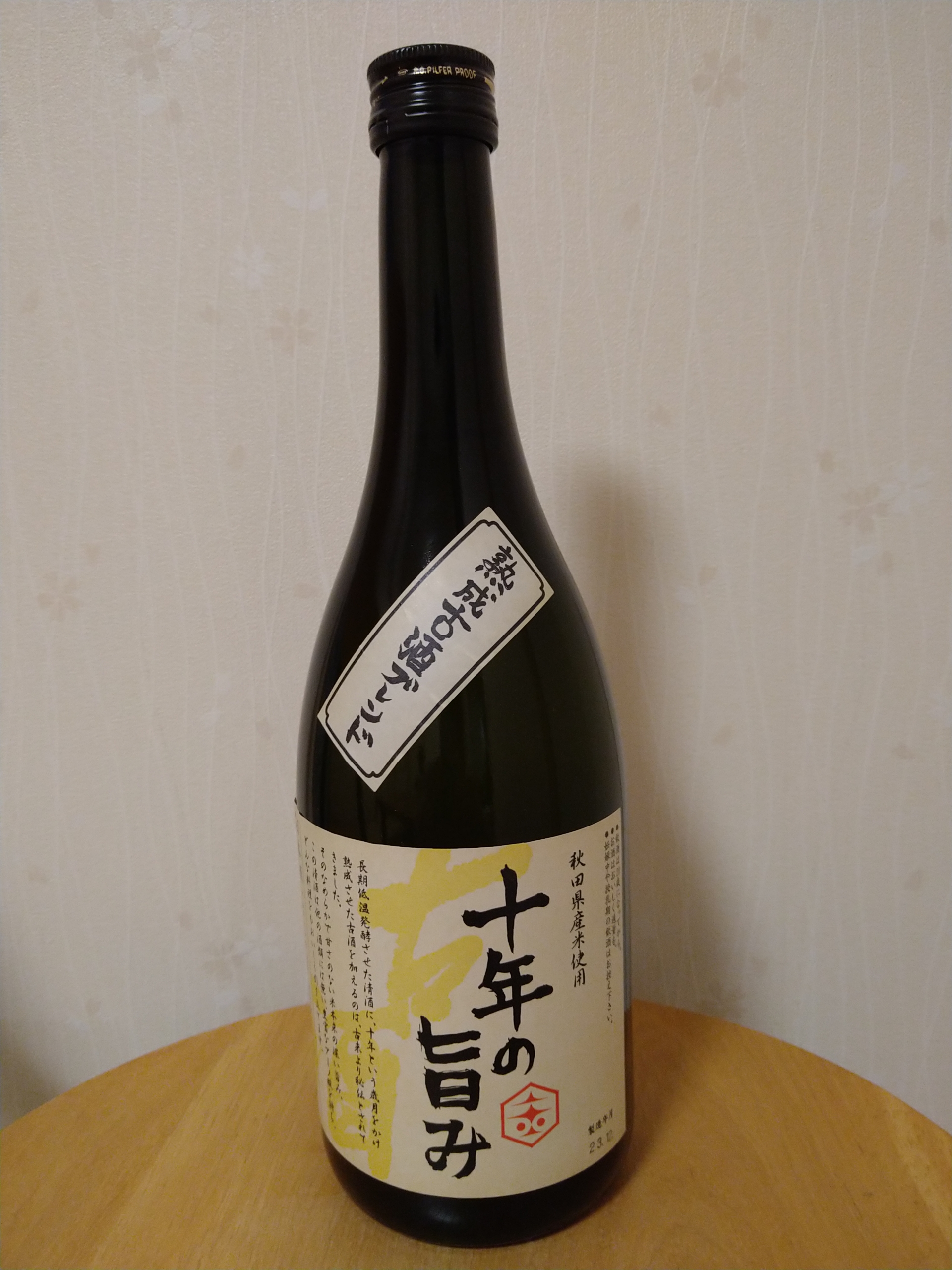 今日は栃木県那須塩原市のベイシア那須塩原店で987円で購入した、秋田県大仙市の秋田富士酒造店が醸造して、同じ敷地内にある別会社扱いの金紋秋田酒造が加工している酒「十年の旨味」を常温で飲みました。この酒、原料米に秋田県産米を使用した10年古酒と低温発酵させた清酒をブレンドした商品らしいが、酒は糖類使用の糖類添加酒でアルコール度数は14度台とやや低めになっています。飲んだ感想はやや濃醇な最初にアルコール辛さがカーッときて、後から甘みと古酒独特の火薬っぽい香りと熟成された旨味がしっかりと感じられる酒で糖類入りですが、安くてとても美味しい酒でした。