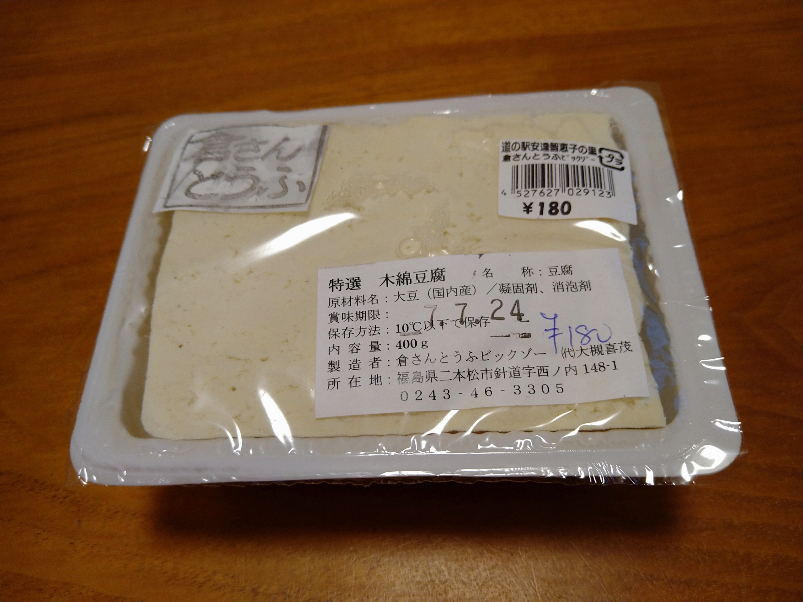 今日の酒の肴は二本松市の倉さんとうふビックゾーが製造する国産大豆で作った木綿豆腐です。