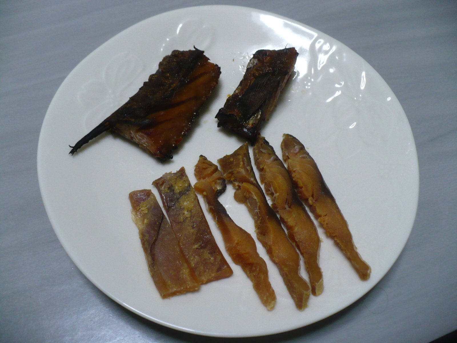 今日の酒の肴はお土産に頂いた福井県の郷土料理である鯖のへしこを糠を落として、そのまま生で刺身と軽く焼いて二通りで食べました。脂がのって美味いのだが塩分がかなり強いので辛いです。特に生は辛過ぎです!焼くと脂と共に塩分も身から流れ落ちるので辛さは緩和されて香ばしく美味しく食べれます。酒にも合いますが、飲んだ〆に食べたお茶漬けが格別でした。