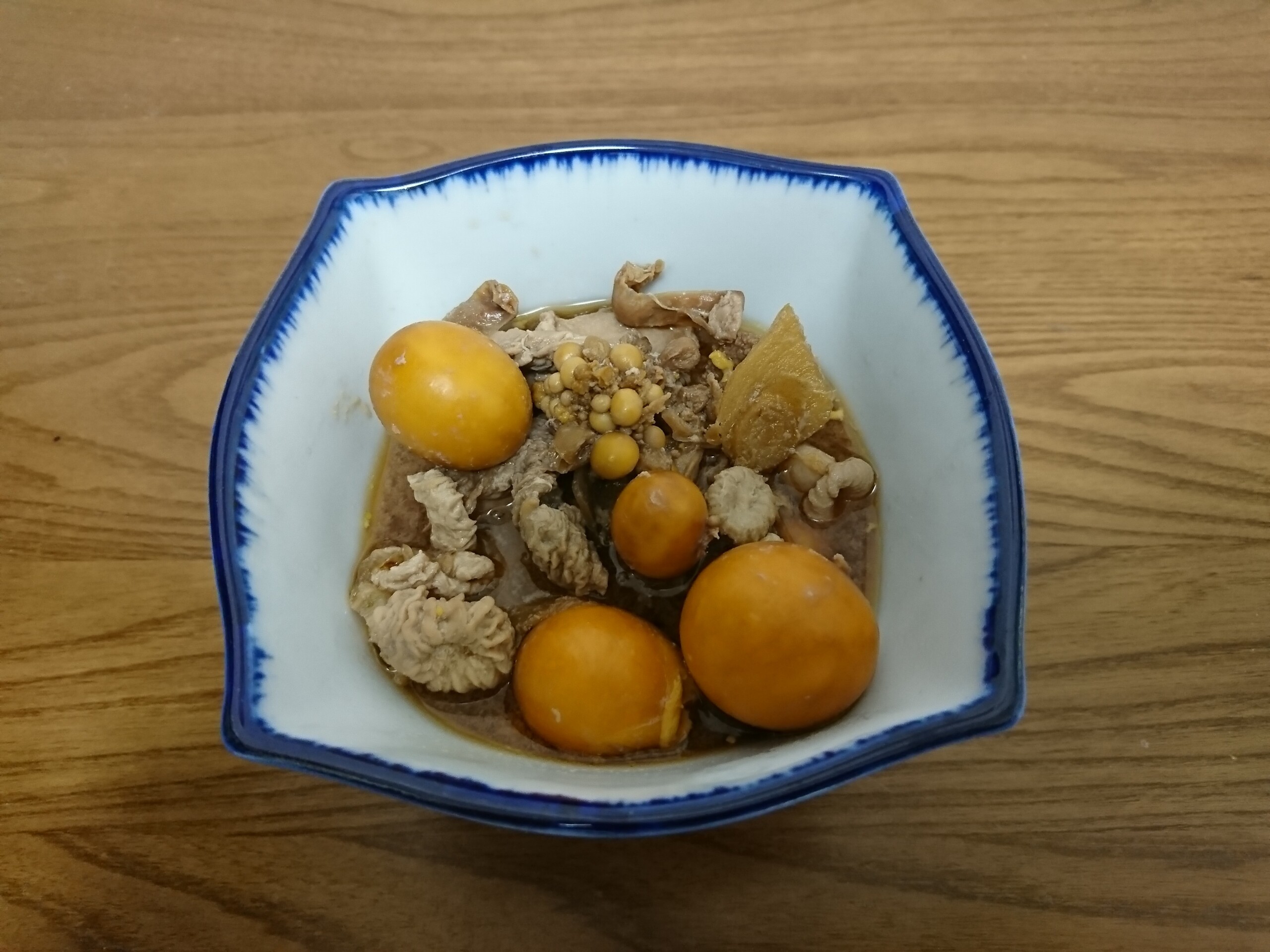 今日の酒の肴は鶏の玉ひも(親もつ)を生姜・醤油・酒・みりん・砂糖で煮て煮付けにしました。