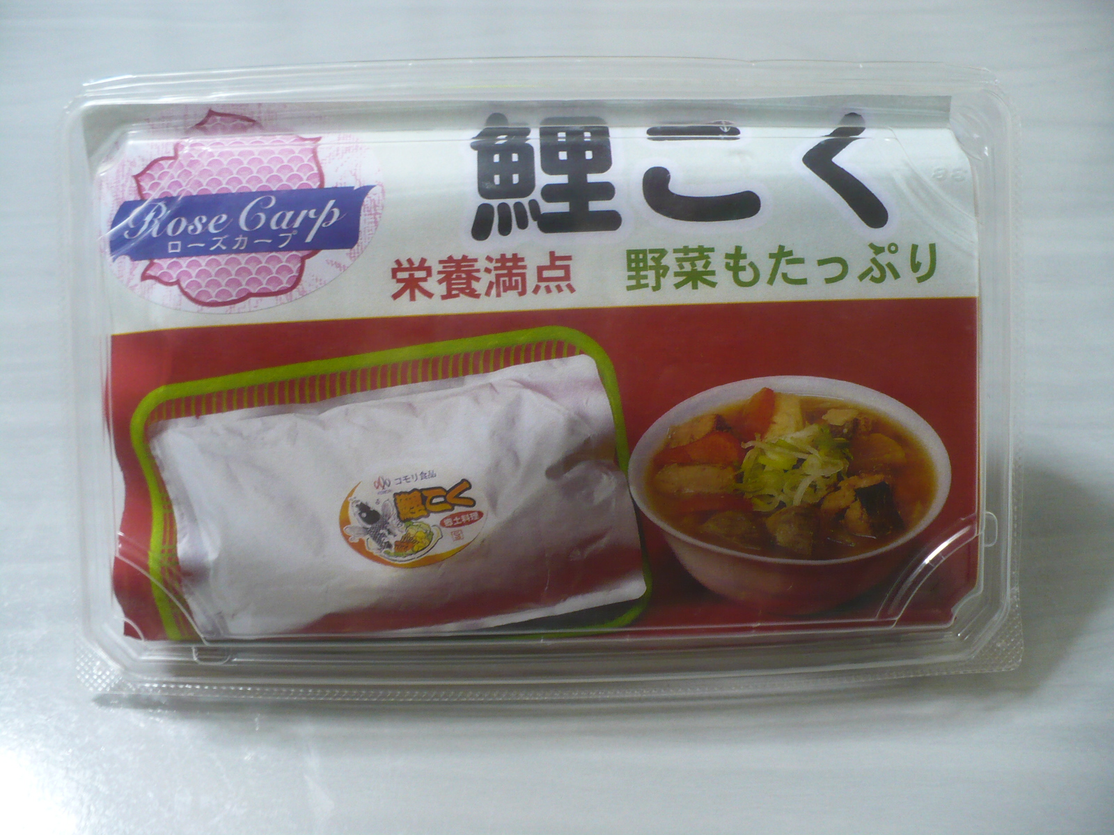 食べた感想は川魚料理専門店で食べる鯉こくに比べ淡白な味で、旨味のある鯉の脂が浮いてないので、濃厚な旨味と深い味わいはありませんが、保存が効いて即席で手軽に食べれる鯉こくとしては具沢山で美味しかったです。そして値段も350円とお手頃価格で材料の鯉や野菜全てが茨城県産なのが良いですね。