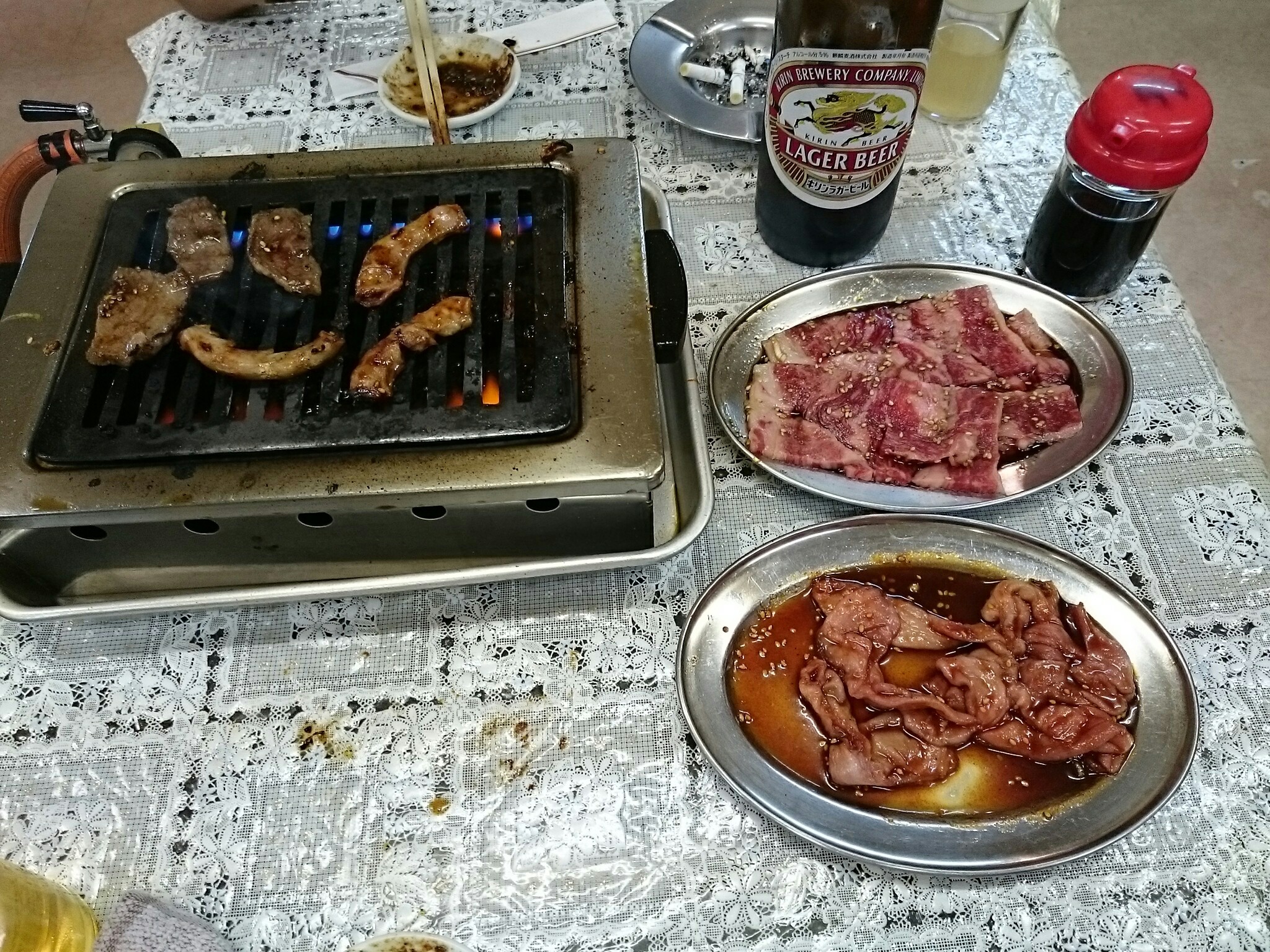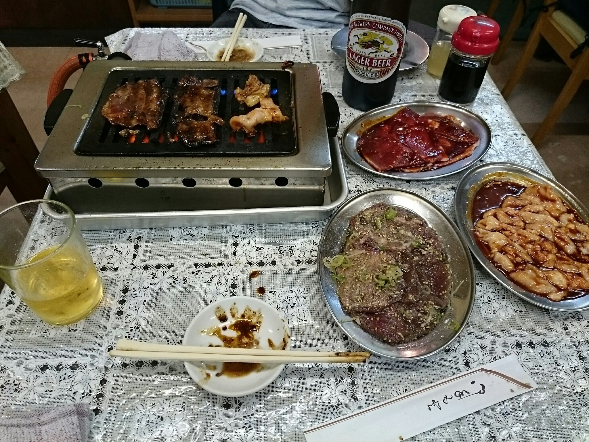 今日はタン塩にラム・ホルモン・コブクロ・カルビの5品を注文しビール大瓶5本を飲んで8500円でした。昭和の雰囲気のある煙が充満する店内で美味しい焼肉を堪能できました。^^ 美味しかったのでまた行ってみたいと思います。