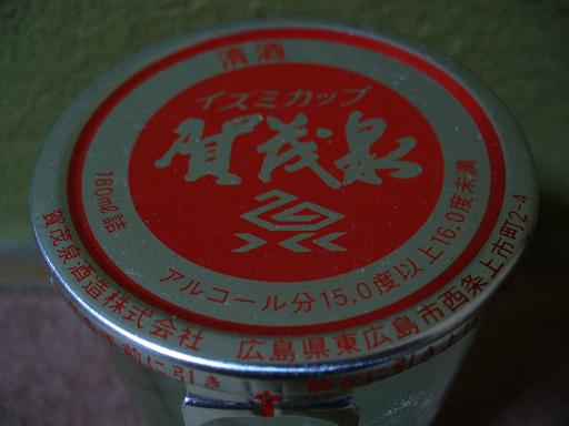 今日は、酒都・西条の賀茂泉のカップ酒「賀茂泉・朱泉・イズミカップ」を飲んだ!賀茂泉と言えば、ほとんど炭を使わない色の付いた純米酒を世に広めてその旨さと、こだわりが認められて人気が出た蔵元で有名ですね〜 今では純米吟醸クラス以上なら全国の地酒専門店や百貨店でも買えますね〜 その賀茂泉の自販機売りのカップ酒を去年11月広島県は呉市に遊びに行った際に瀬戸内海に浮かぶ芸予諸島の蒲刈島で発見した!私も昔 広島に住んでた時期があったが店頭での賀茂泉のカップ酒は、良く見たものだが、自販機は今回が初めて!初めて見る賀茂泉の自販機に感動しましたね〜 しかも島の寂れた酒屋さん前でね〜 嬉しくて即買いですよ〜 味は辛口の酒だが、後味がやや甘く感じるかなぁ・・・ 普通酒ながら味のある酒で結構美味い!ココの純米酒や純米吟醸酒は、私の好きな酒で広島に行った時は必ずと言っていいほど買って帰りますが、ココの普通酒は純米酒とかには、勝らないが西条の普通酒カップ酒の中では一番美味いかも知れませんね〜