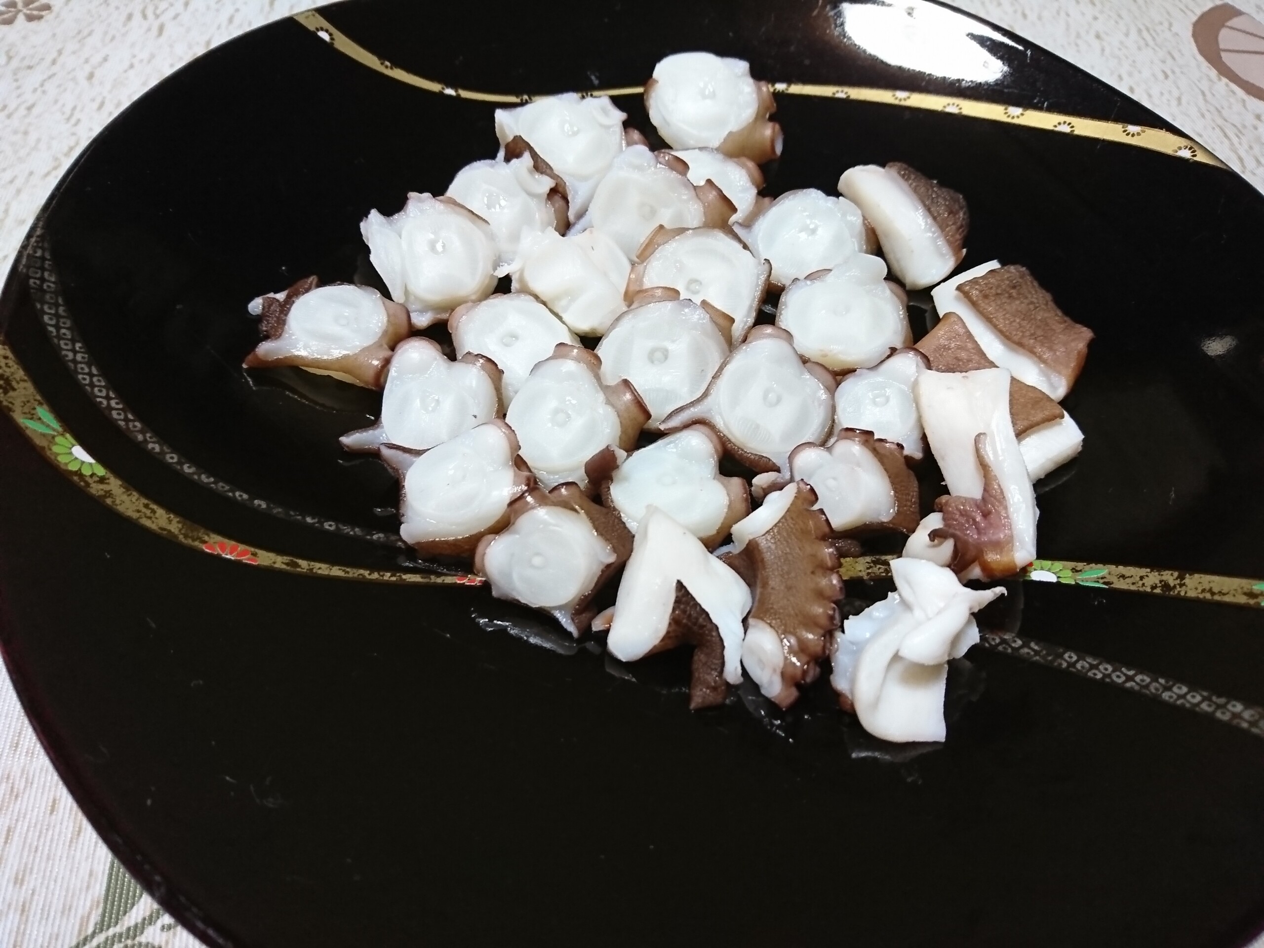 生タコとは塩で揉んで湯がきました。弾力のある食感で噛めばタコの濃い旨味が出てきてメチャ美味しかったです。