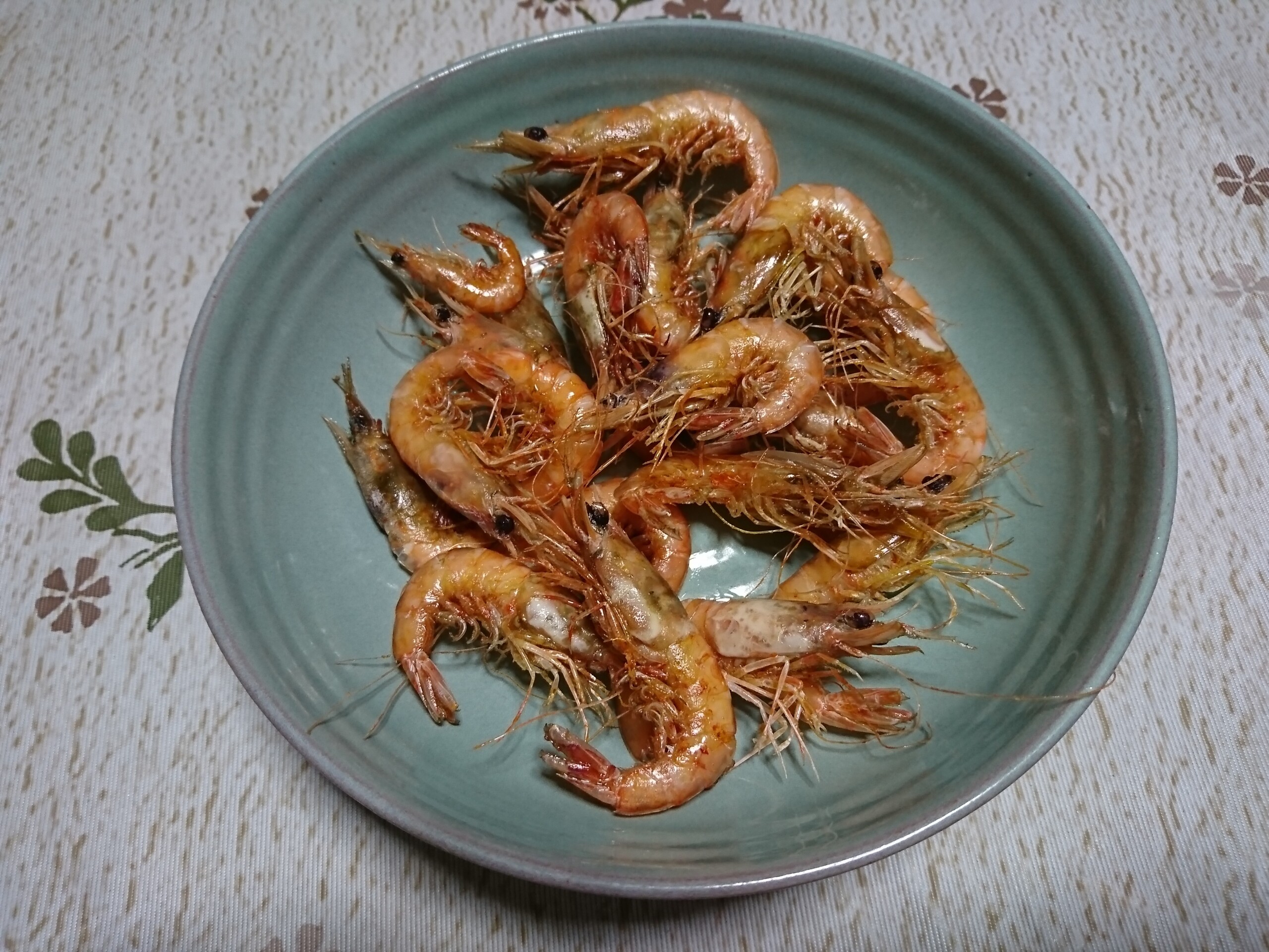 えびはキッチンペーパーで水気を取って油で素揚げにしました。爪や角が口の中に刺さって少し痛いですが、えびの旨味とサクサクとした食感と香ばしさがあって美味しかったです。