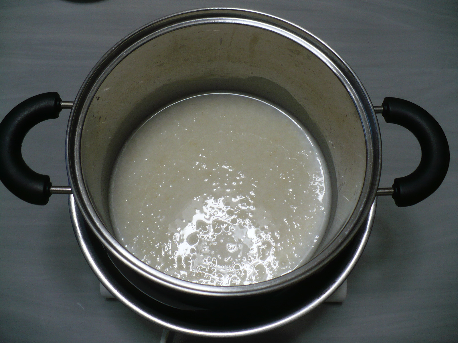 炊いた熱々のおかいさんを冷まして400ccの水と米麹を200g入れて50〜60℃の温度を約10時間キープします。その間、必ず注意しなければならない事は温度を厳守する事ですが、最悪70℃まではOKらしいが、温度が70℃くらいに達すると麹菌が作った酵素が失活(無くなる)してしまいます。酵素が失活すると鍋の中には酵素が無い状態なので甘くなりません。逆に温度が低いと時間を掛けてじわじわ甘くはなりますが、他の菌(雑菌)等が良く繁殖する環境になりますので汚染されて酸っぱくなったり変な味や臭いがする事があります。 50〜60℃の温度をキープするのは保温器にタイマーを付けて温度をコントロールし湯煎するのがベストですが、手軽に出るのは炊飯器の保温機能を使う方法もありますよ。 ←詳細はググって下さい。