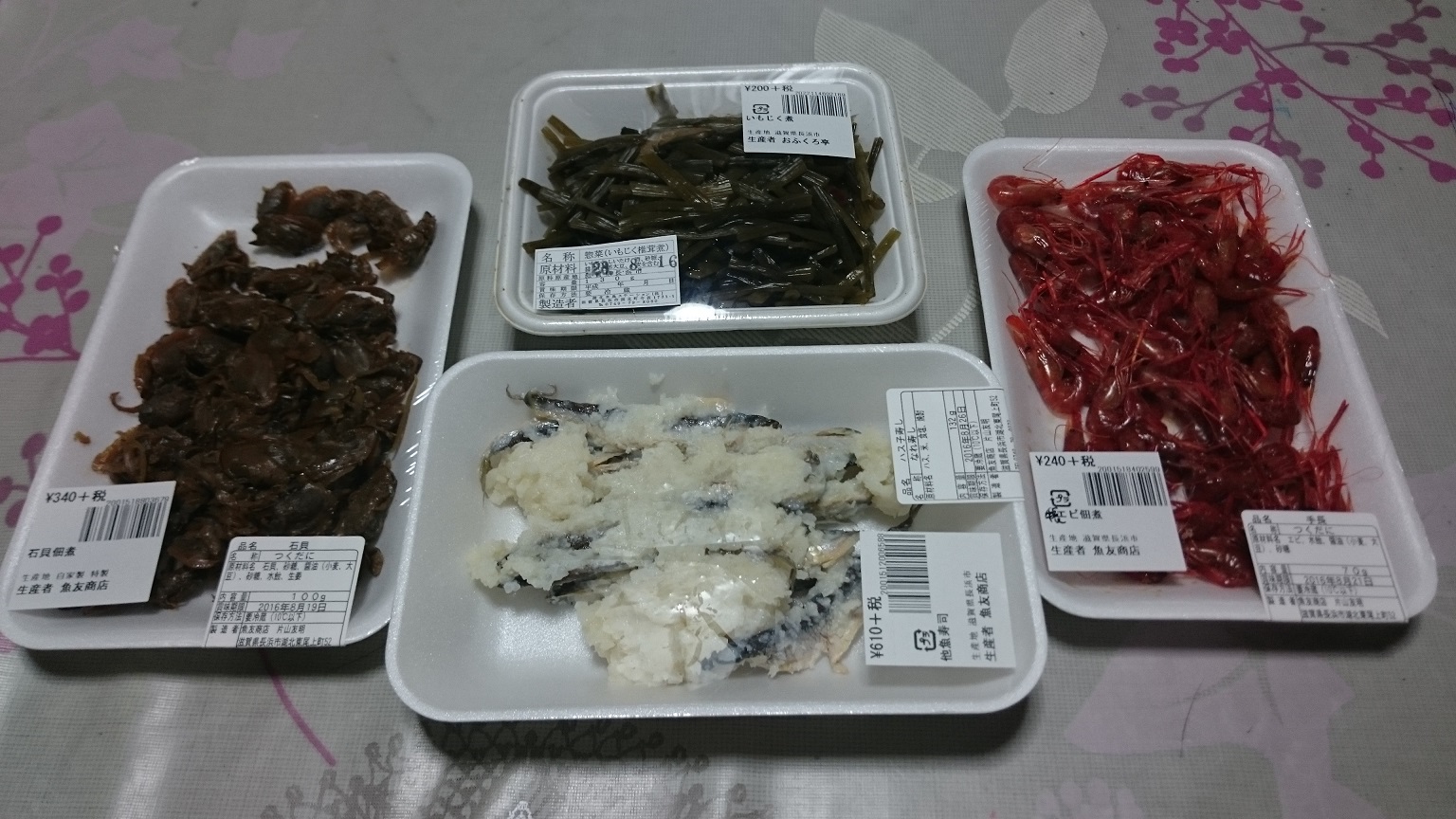 今回、私は石貝と手長エビの佃煮・ハスのなれ寿司を買いました。日本酒のアテに食べてみたいと思います。