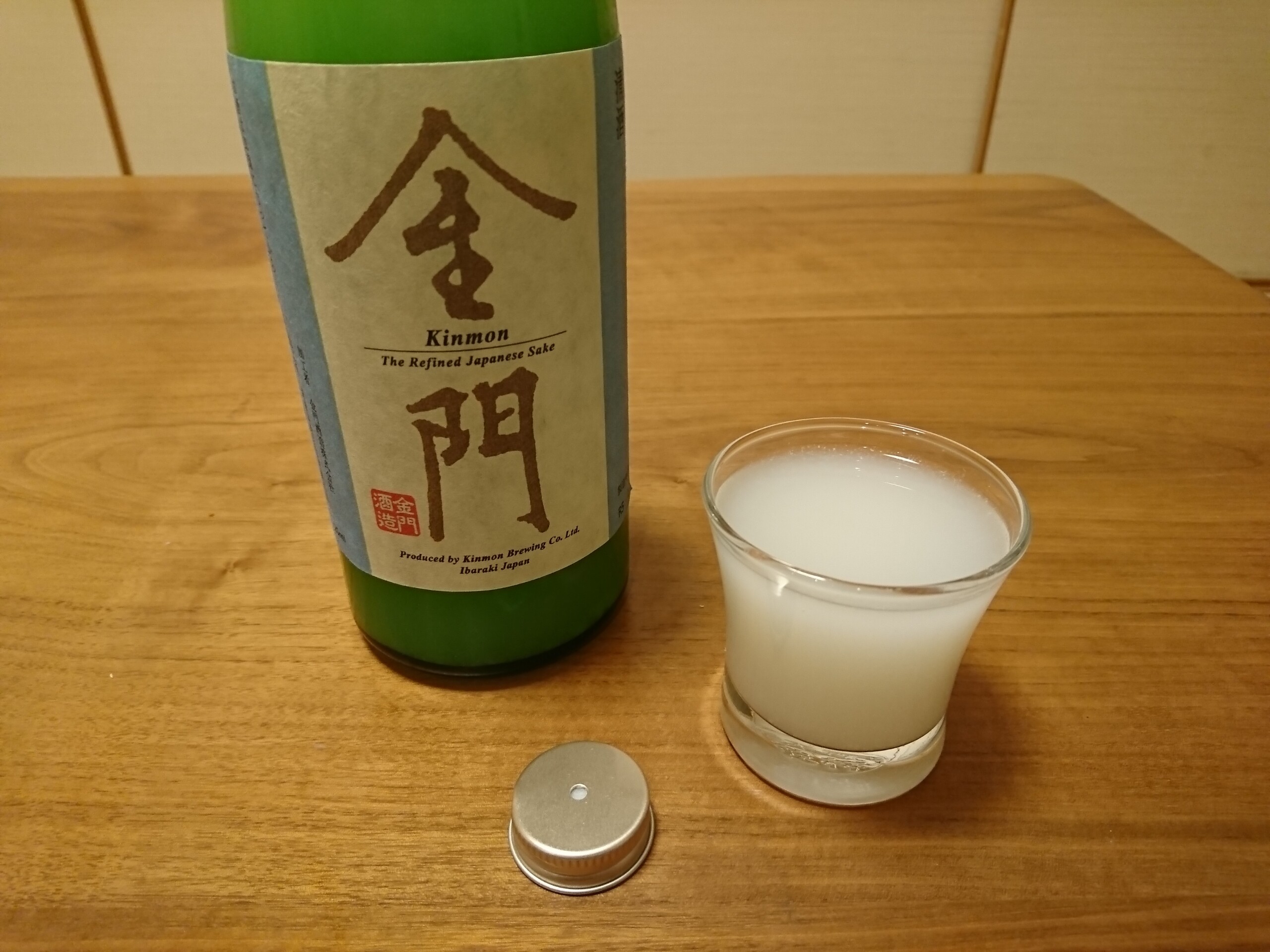今日は茨城県取手市の酒蔵・金門酒造の街の酒屋さんを兼ねた直売所・きんもん本店で1020円で購入した酒「金門・純米酒・生にごり酒」を冷やして飲みました。この酒、精米歩合65%の米を使用していて純米酒としては少し削り込んだ米を使ってる、火入れしてない生のにごり酒で蓋の上部にはガス抜きの穴が開いていました。そしてここ金門酒造は結構前から自醸をしていませんが、茨城県酒造組合には現在も加盟しています。