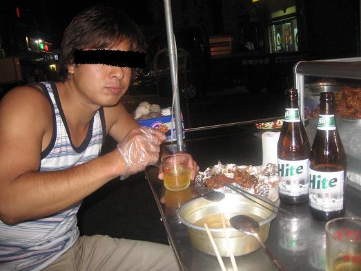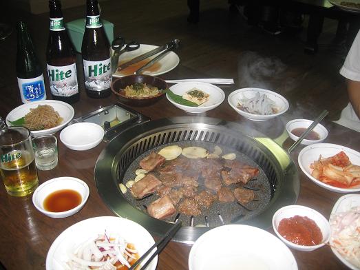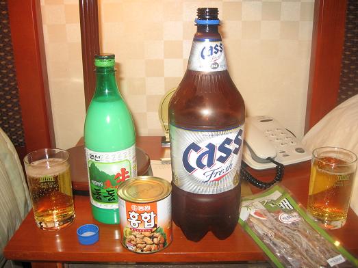 初日の夕食は国際市場(クッチェシジャン)のカルビ屋でカルビとプルコギをいただいた。カルビは美味しかったが、プルコギはイマイチだった。韓国のビール(メッチュ)は、薄っぺらく飲みやすいので、ガバガバ飲めます。私はHiteがお気に入りで、Hiteばかり飲んでいたが、OBとCassも美味しいです。ホテルに帰りスルメと牡蠣の缶詰をコンビニで買い、飲みなおしました。Cassの1,6Lのペットボトルが5000ウォンとかなり安い!