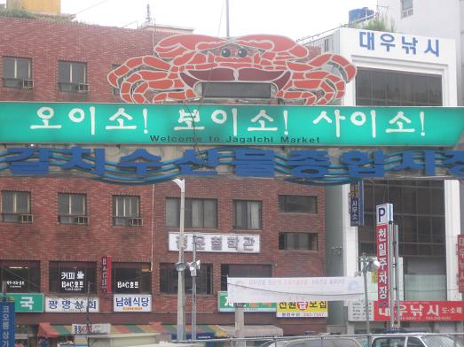 ここは釜山にある韓国最大の魚市場とも言われているチャガルチ市場で、私は先週からチャガルチ市場内に住んでいるので、毎晩 市場に繰り出し酒の肴の獲物を探してします。(^∀^)