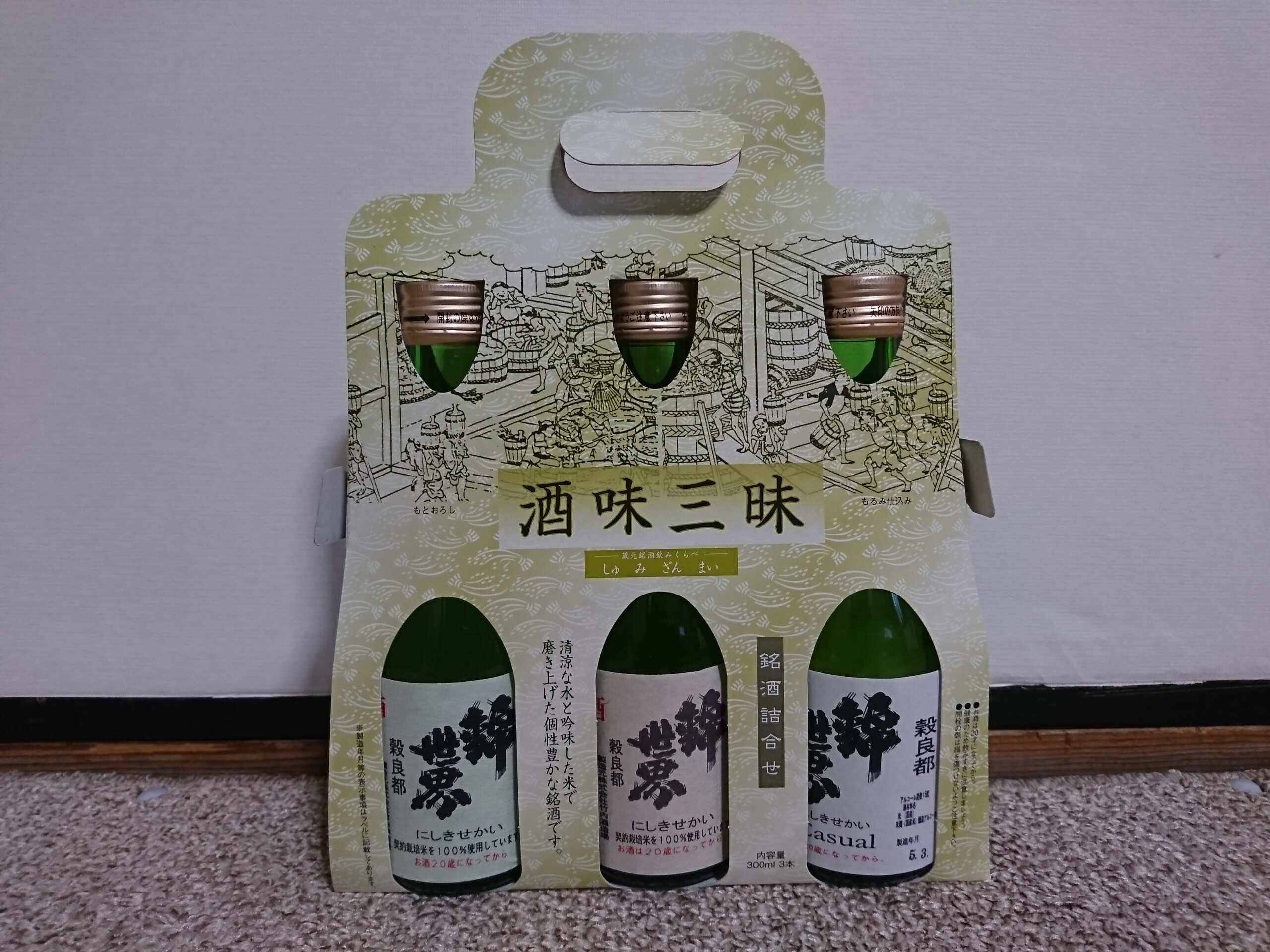 今回飲んだ酒は穀良都の酒米で仕込まれた、純米吟醸と純米・普通酒の3本セットで買った物で1つ1つの値段は分かりませんが、酒蔵で3本セットで1600円で購入しました。