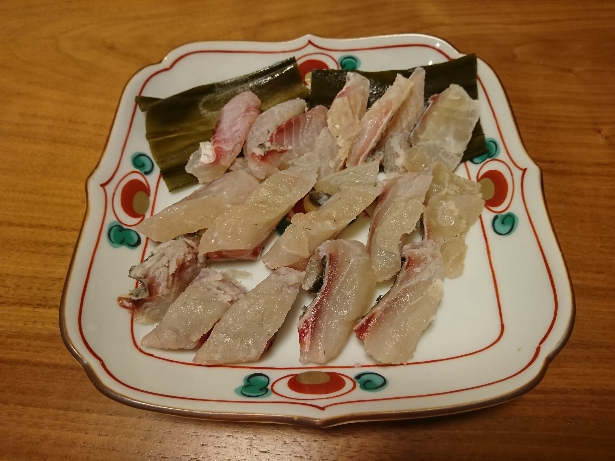 今日の酒の肴は昨日さばいたキチヌの半分を昆布〆にしたので食べました。身に昆布の旨味が移りキチヌの旨味と合わさって相乗効果でとても美味しかったです。