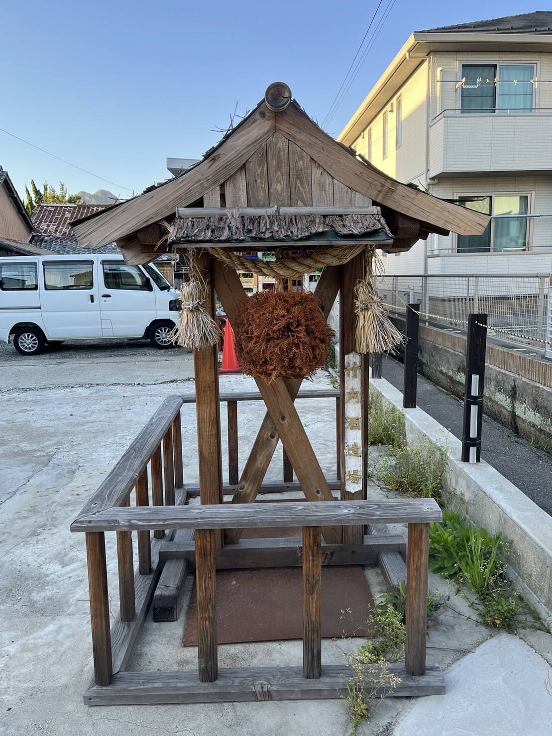 酒蔵の駐車場にはお地蔵さんみたいな感じで杉玉が飾られていました。