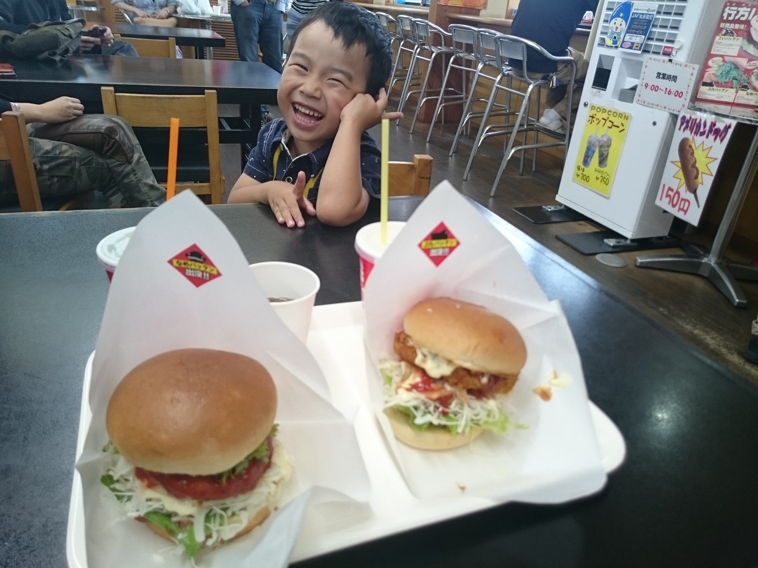 そして買い物の後は店内にある飲食コーナーで名物で一日限定10食のなまずを使ったハンバーガー・なめパックンを食べました。