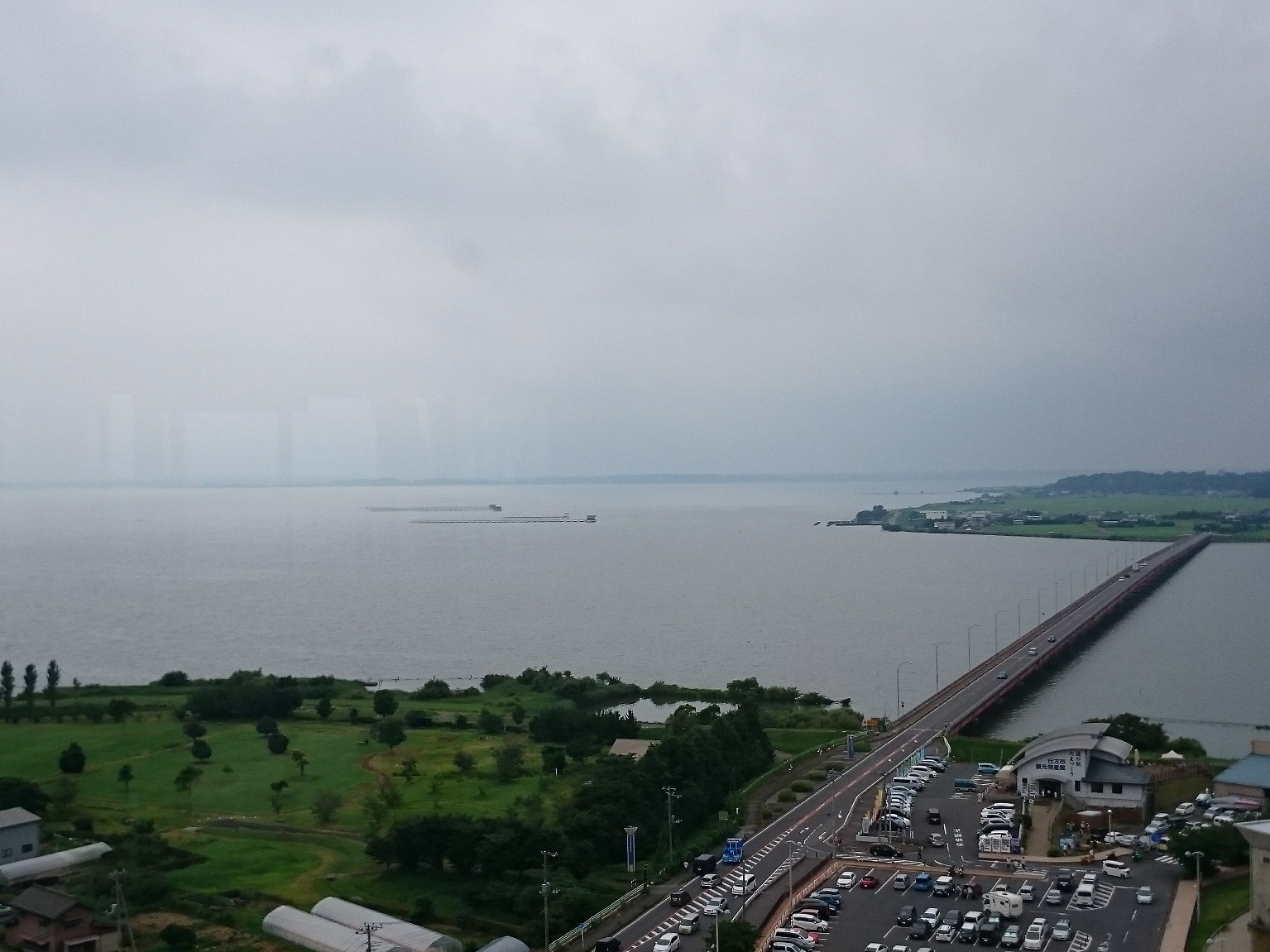 買い物の後は行方市観光物産館の横にある施設・霞ヶ浦ふれあいランドに行きました。そしてその施設内にある地上60mの玉造・虹の塔の展望台から霞ヶ浦の景色を見ました。展望台から撮った霞ヶ浦の画像です!霞ヶ浦に架かる大きな橋は霞ヶ浦大橋で対岸はかすみがうら市で、小さく観光物産館も写ってますね。