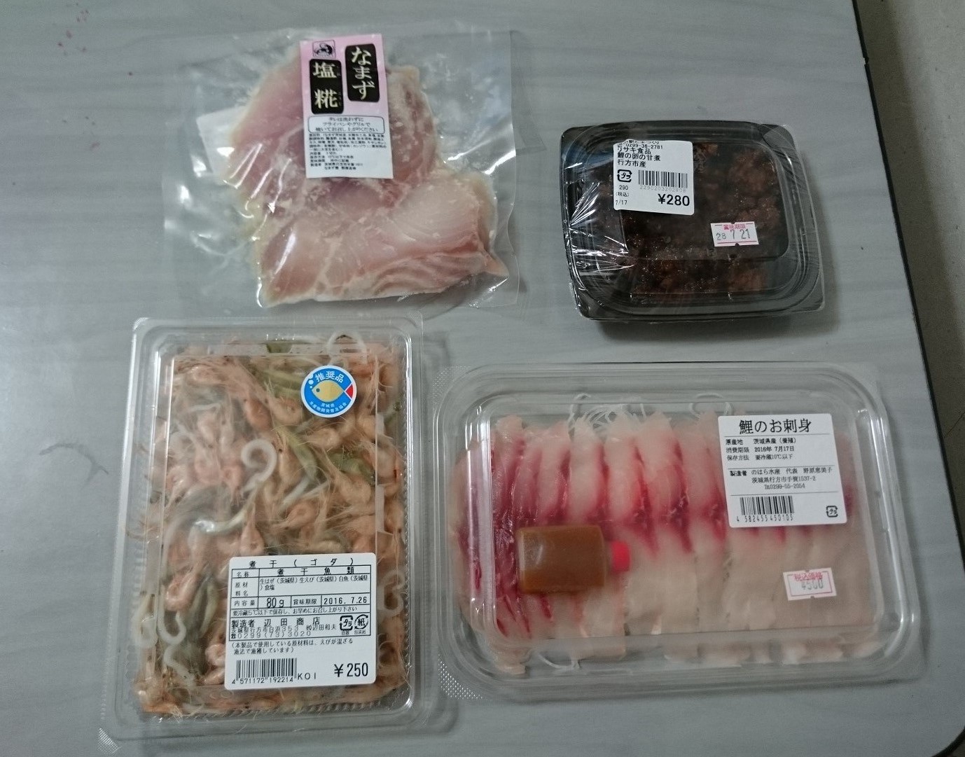 今日は物産館で鯉の刺身と鯉の卵の甘煮・ナマズの塩糀漬、エビや小魚などが入った煮干しを買いました。これらを肴に日本酒を飲みたいと思います。(^∀^)