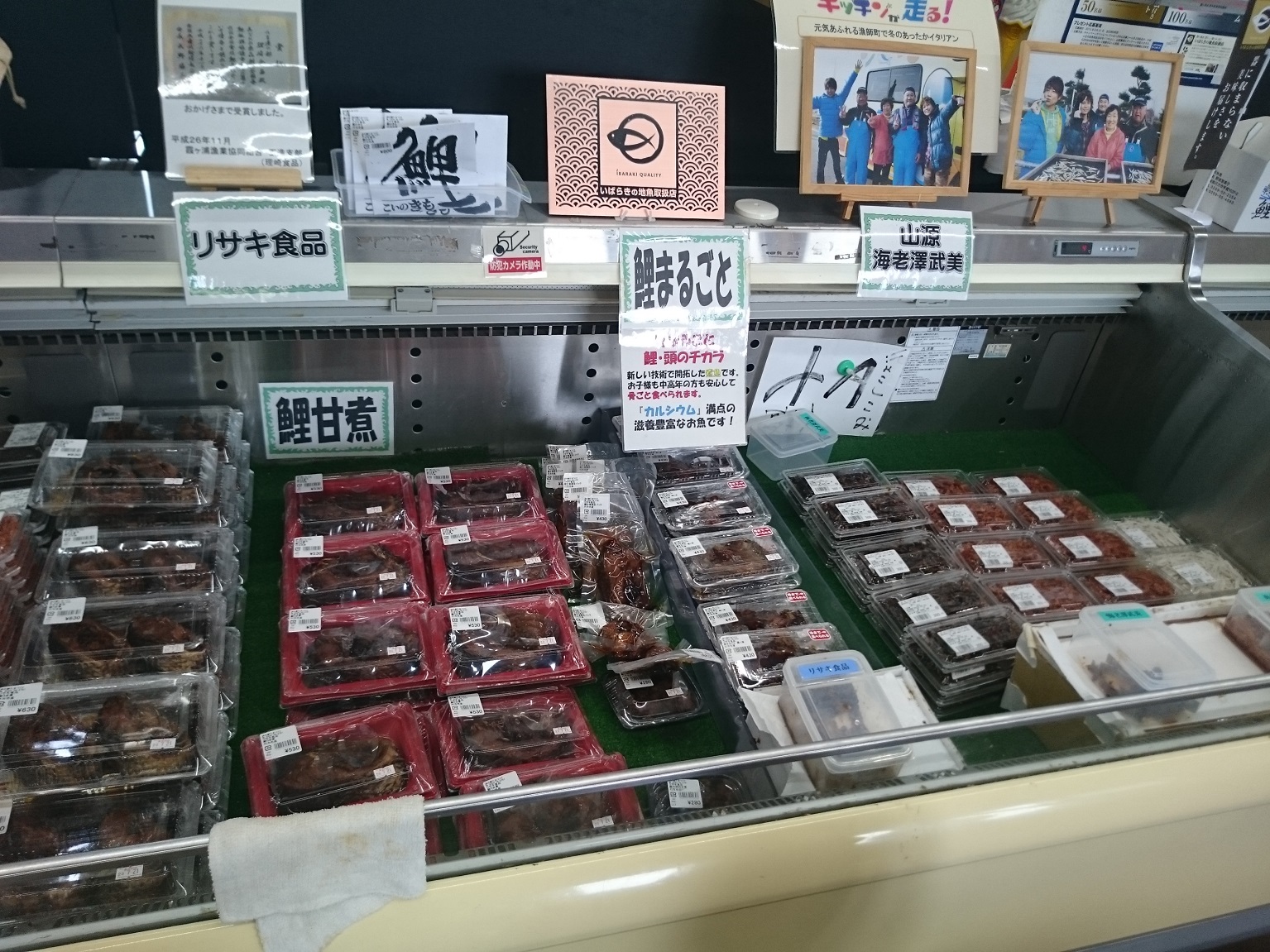 物産館には野菜だけでなく霞ヶ浦で獲れた小魚やエビ類の佃煮や鯉・フナ・ナマズ等の加工品もたくさん売られています。