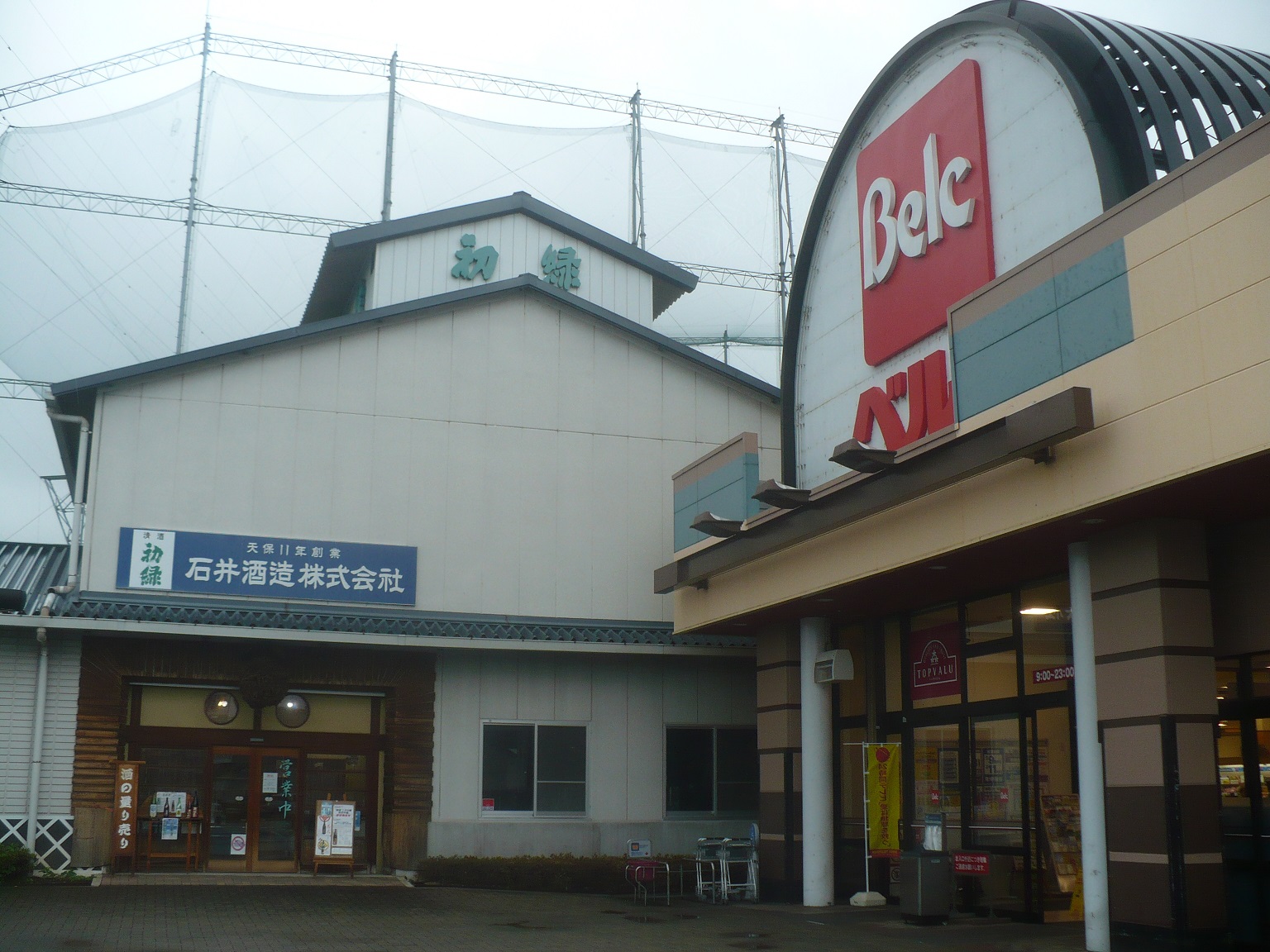 酒蔵はスーパーや薬局・ゴルフ練習場などの商業施設の中にあります。そして酒蔵の真隣がスーパー・ベルクの入口なんです!もしかしたら新しく建て替えた酒蔵なのかなぁ・・・
