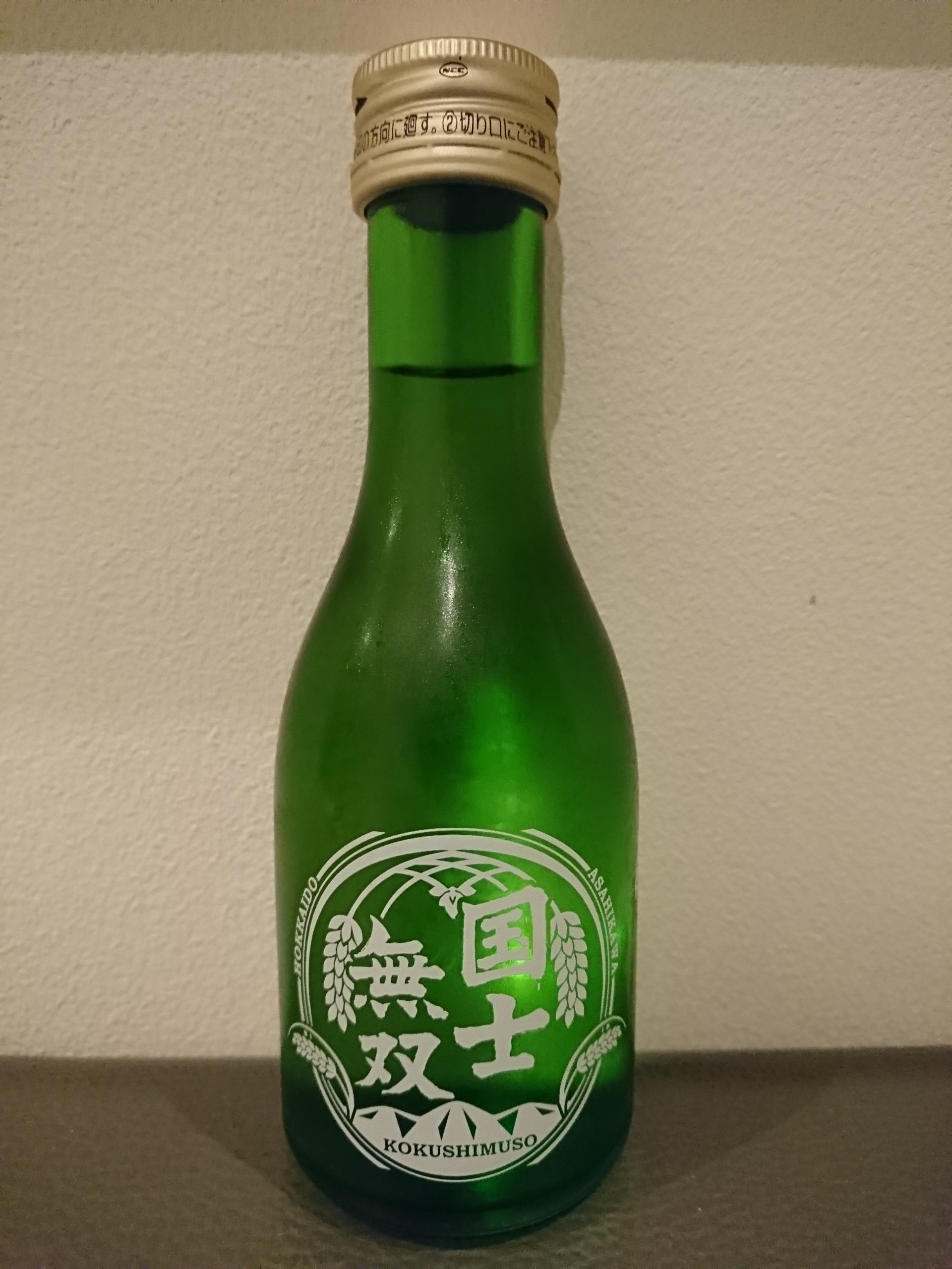 今日は苫小牧市内にある、イオン苫小牧店で224円で購入した、旭川市の酒蔵・高砂酒造の酒「国士無双」を冷して飲みました。この酒、プリント壜に国士無双としか書かれておらず、酒のランク等は書いてないので、糖類無添加の普通酒と思われます。飲んだ感想は淡麗のキリッとキレの良い辛口の酒で辛さの中に旨味も感じる酒で普通酒としては結構美味しかったです。