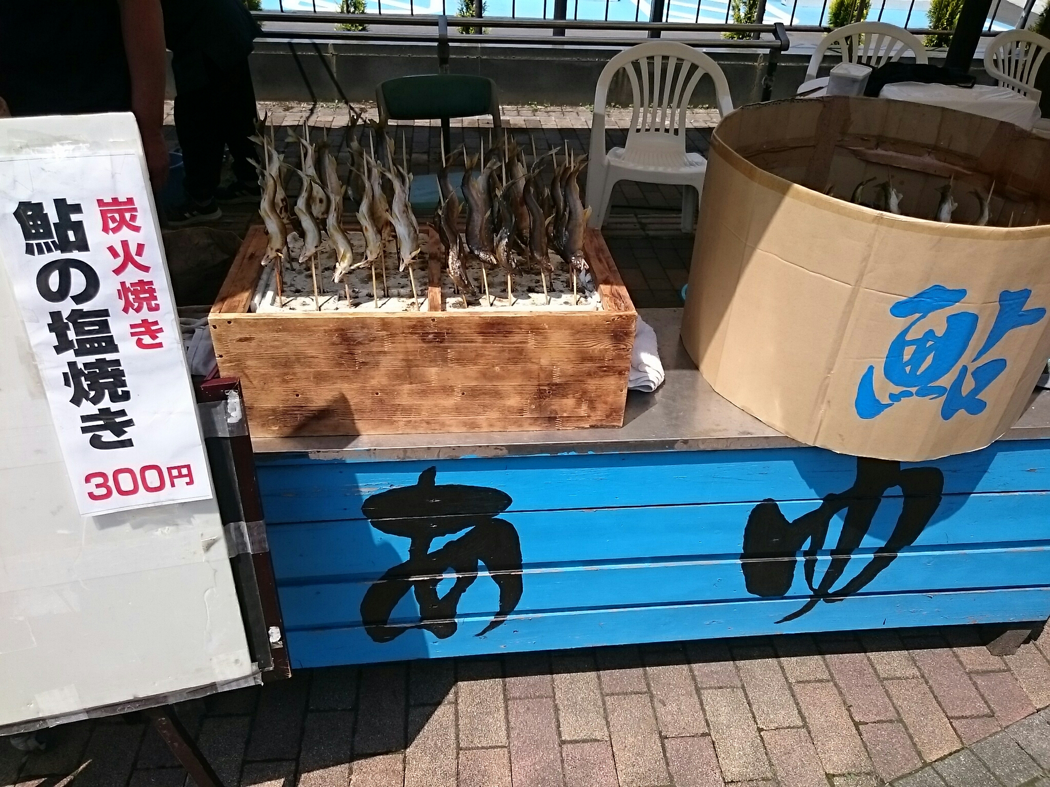 観光やなに行ったら良く見る光景〜 鮎の炭火焼でーす! こんがりと鮎が焼ける匂いが食欲をそそります!^^