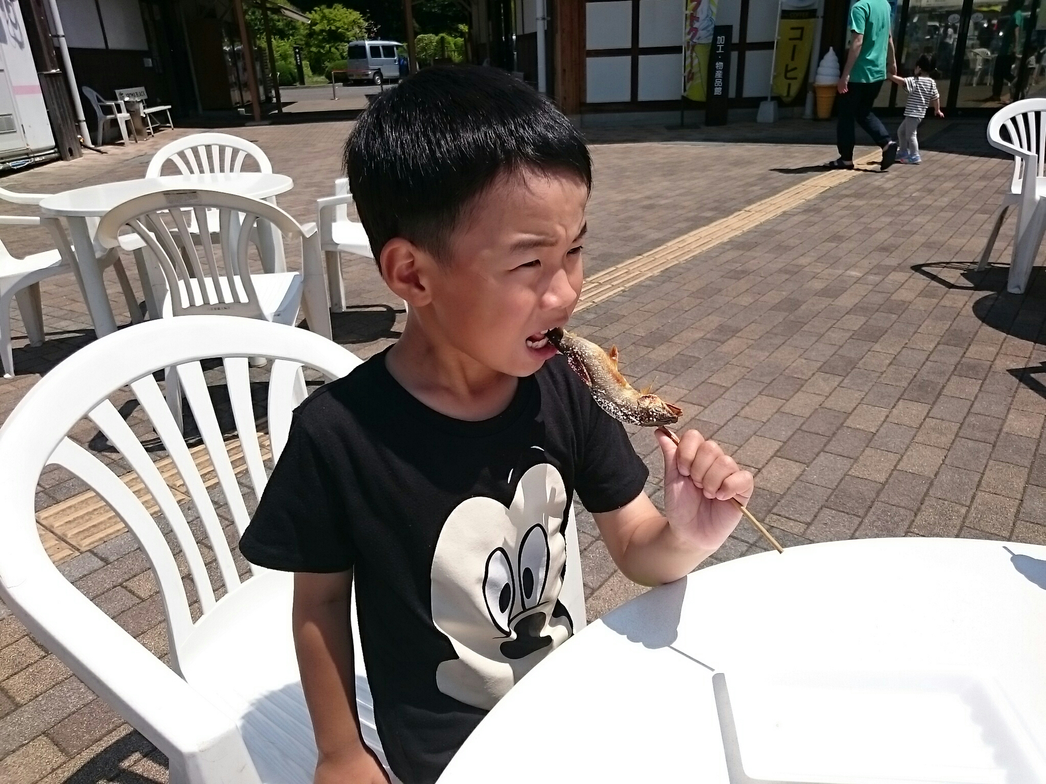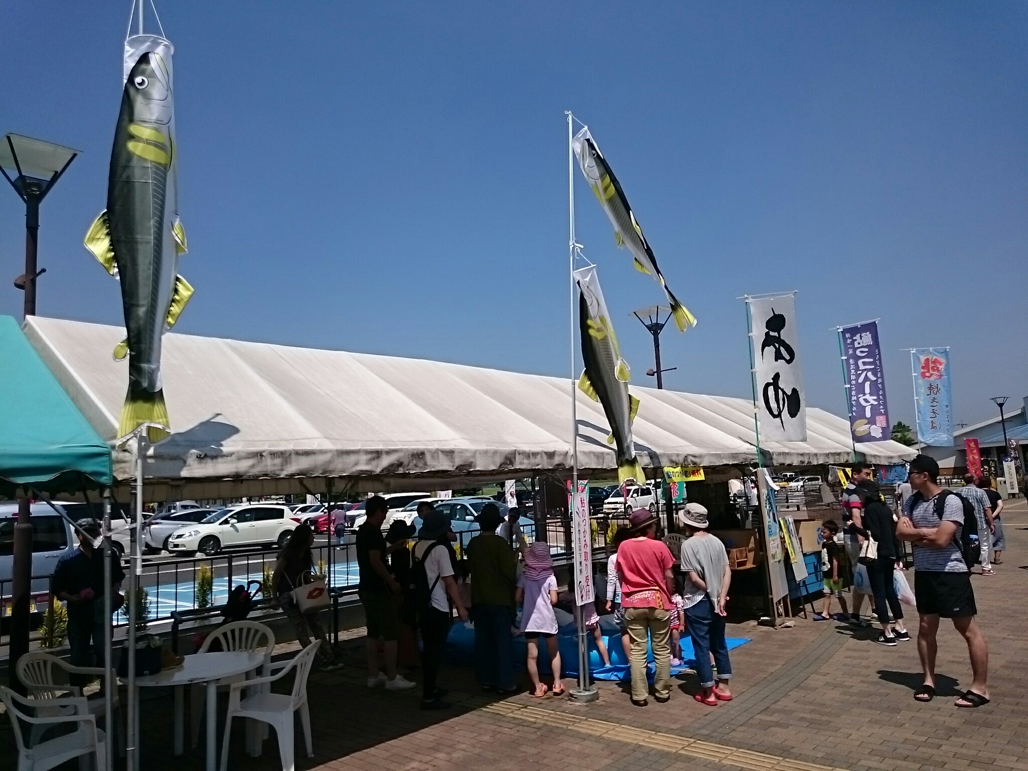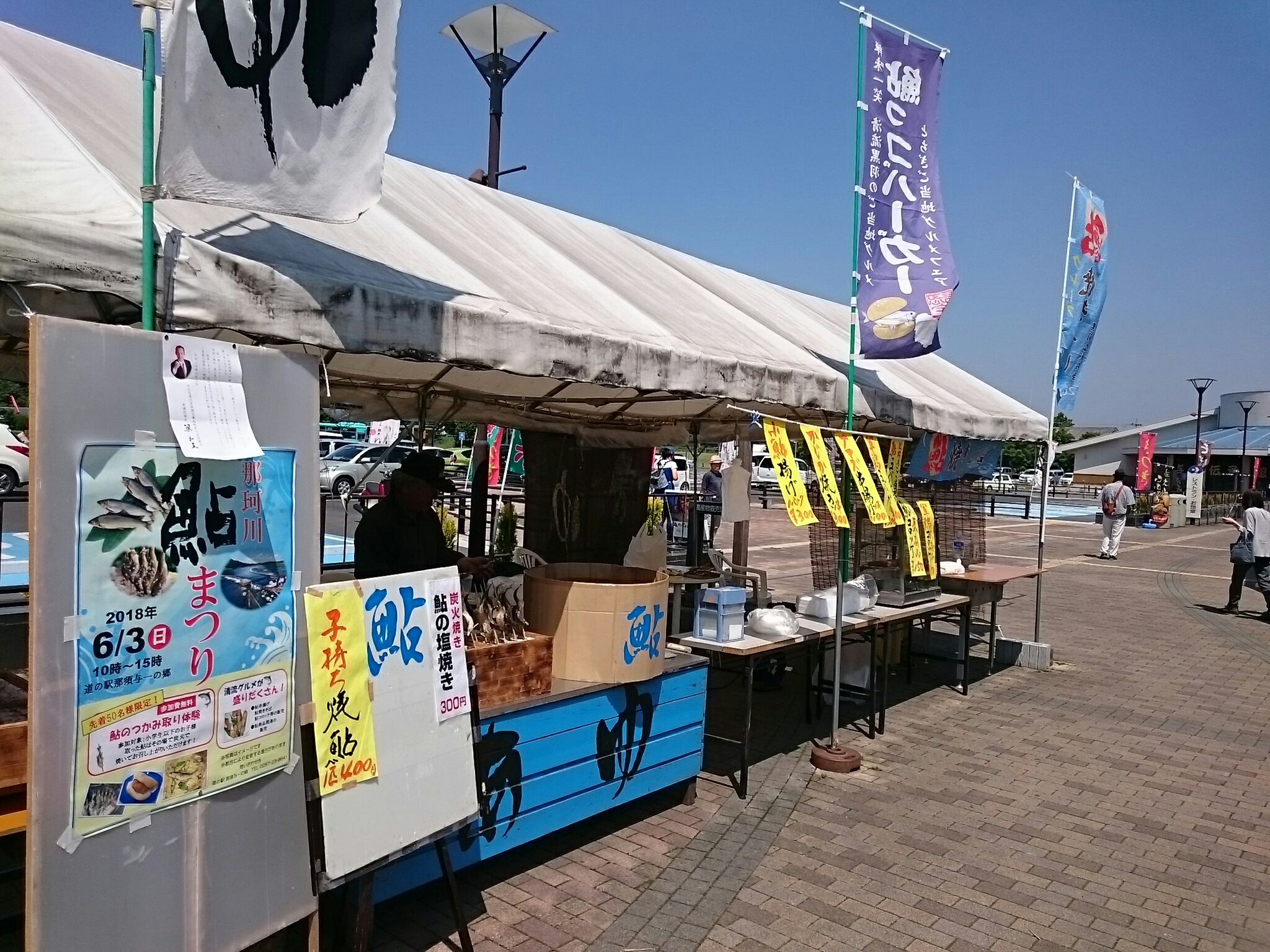昨日は3連休のど真ん中で台風が接近していましたが、天気が良くたくさんのお客さんが来ていました。料理は鮎料理がメインですが、鮎の他に鰻や川えびの唐揚げ・焼鳥や焼そば等もあります。