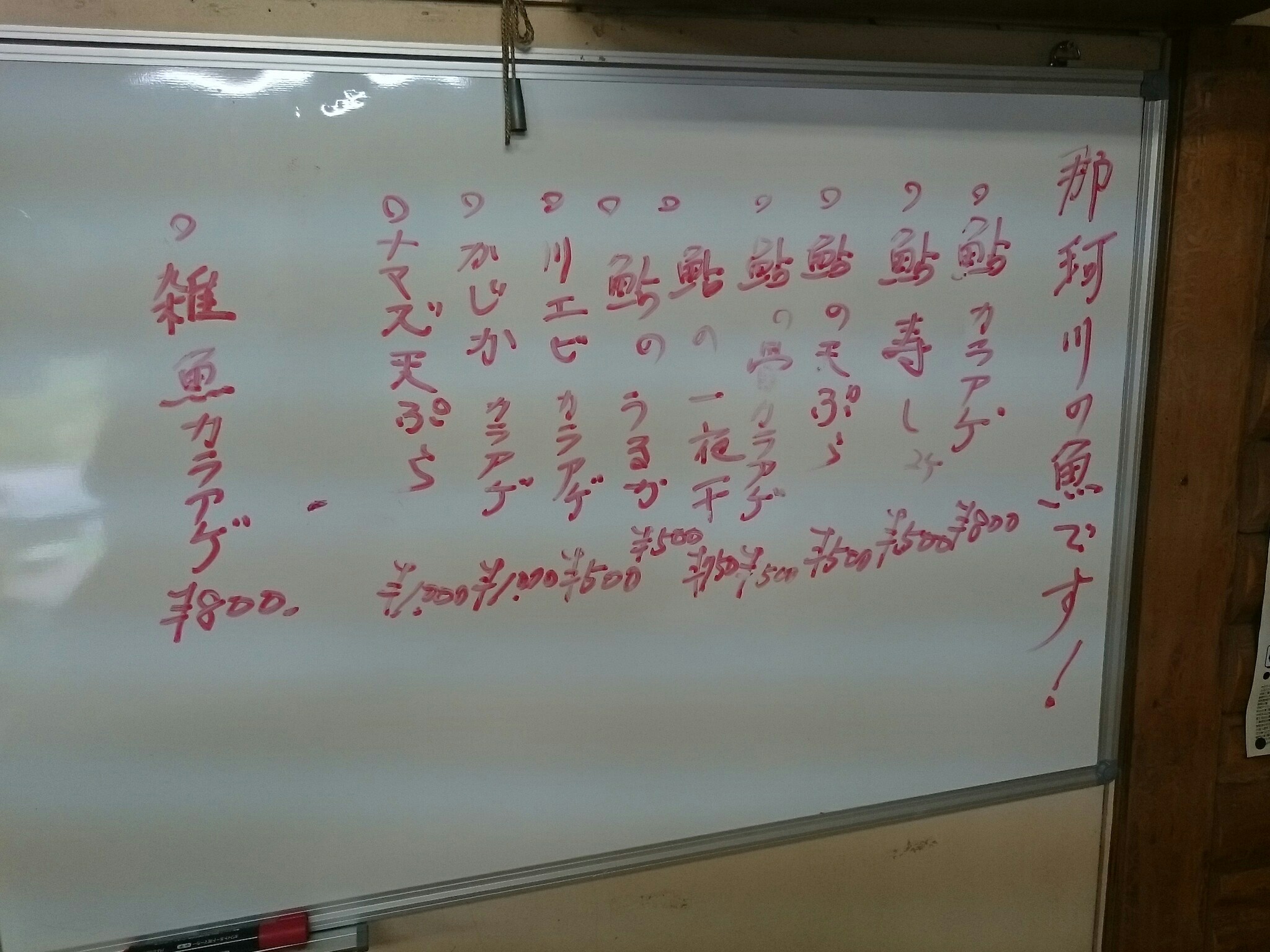 メニューです!鮎の塩焼きをはじめ、刺身・フライ・鮎飯と鮎料理が充実しています。その他にもウナギなどの川魚料理もいくつかありました。