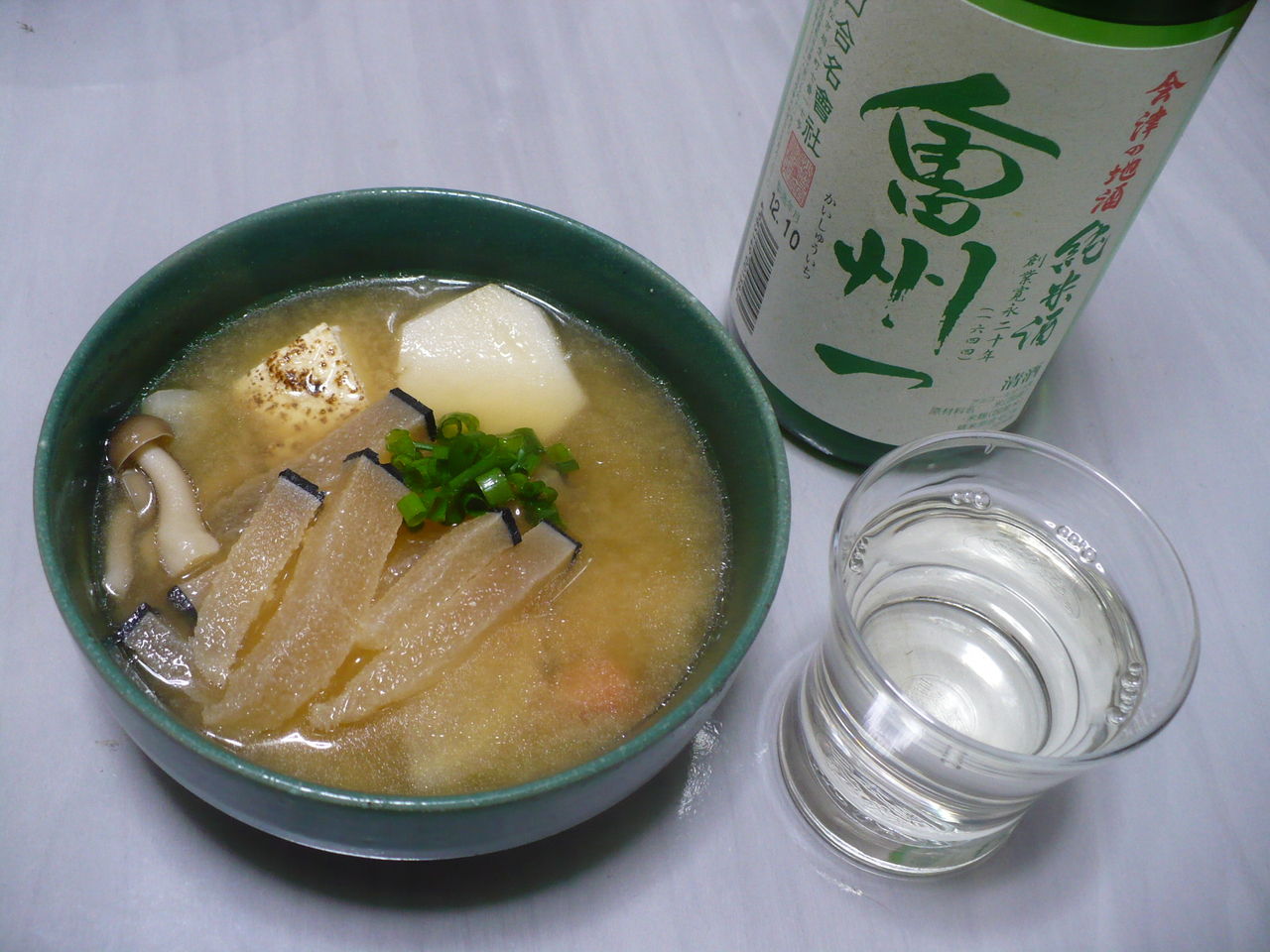 鯨汁は簡単に言うと鯨の脂身が入った味噌汁です。鯨の脂身独特の食感と味わいがあり、味噌にも良く合い美味しいかったです。明日、下痢にならないか少し心配ですけど・・・ (T_T) 日本酒と一緒に食べたら少しグラスに脂が浮くけど、まぁ普通に美味しく飲めますが、肴にはなりませんね。飲んだ後の〆に良いかもしれませんね。