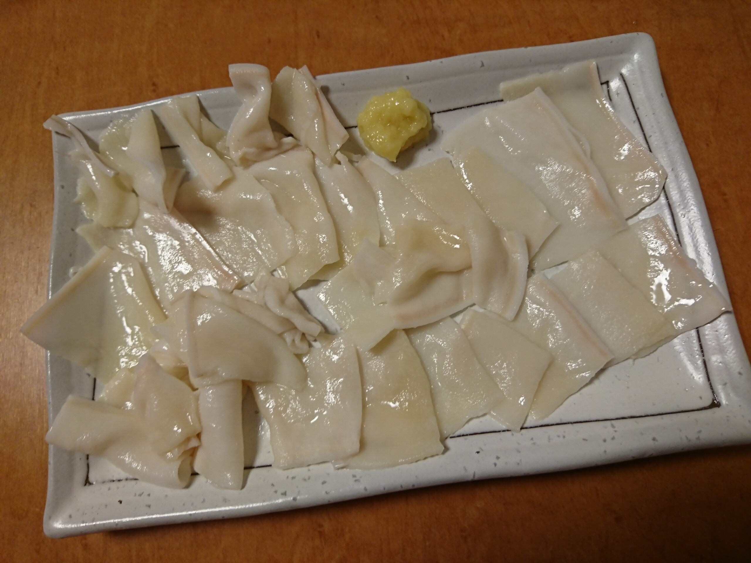 食べた感想は少し塩味が付いていて、ちょっと癖がありました。食感はグニュグニュとしたゴムみたいな感じですが旨味もあります。ポン酢に付けて食べると癖を感じなくなりサッパリとした口当たりで美味しく食べれました。