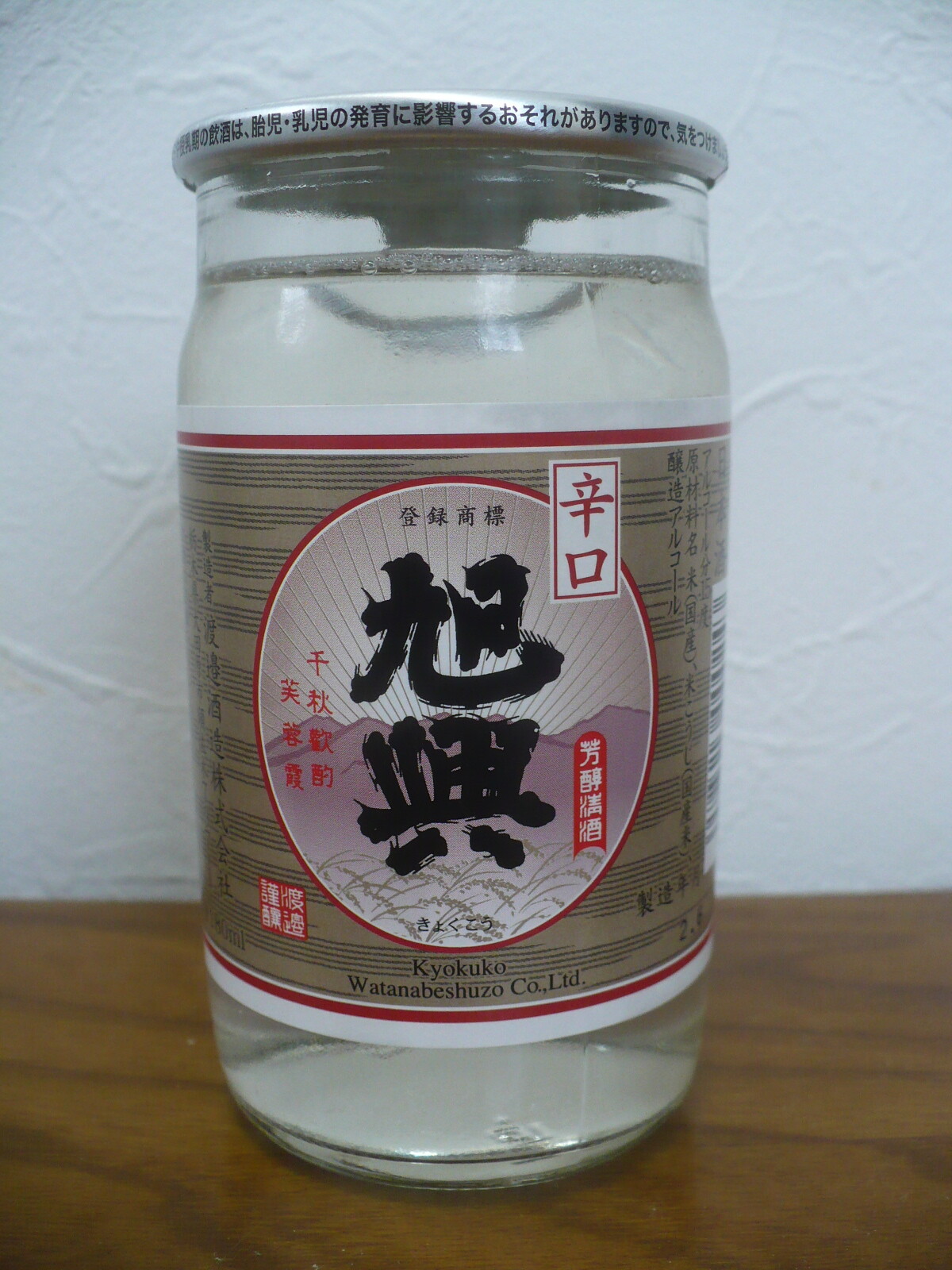 今日は那須塩原市内にあるベイシア・那須塩原店で264円で購入した、大田原市の酒蔵・渡邉酒造の酒「旭興・辛口カップ」を冷やして飲みました。酒は糖類無添加の普通酒で飲んだ感想は淡麗のやや辛口の酒で、飲んでて思ったほど辛くは無く後味はほのかに甘味も感じます。普通酒ながら辛さの中に旨味もあって結構美味しかったです。