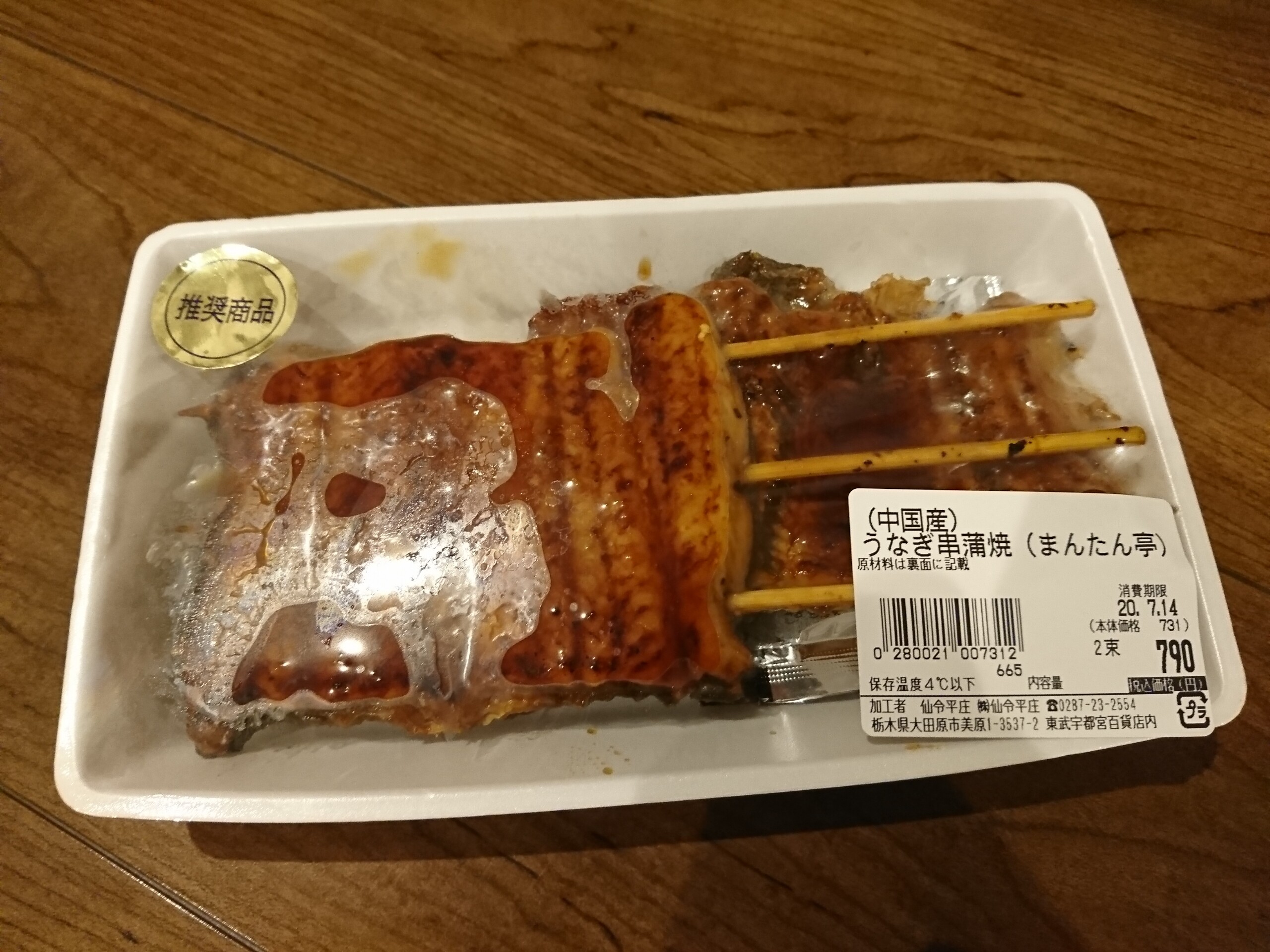 今日の酒の肴は土用の丑の日前ですが無性に鰻が食べたくなったので、仕事帰りに大田原の東武百貨店で鰻の蒲焼きを買いました。