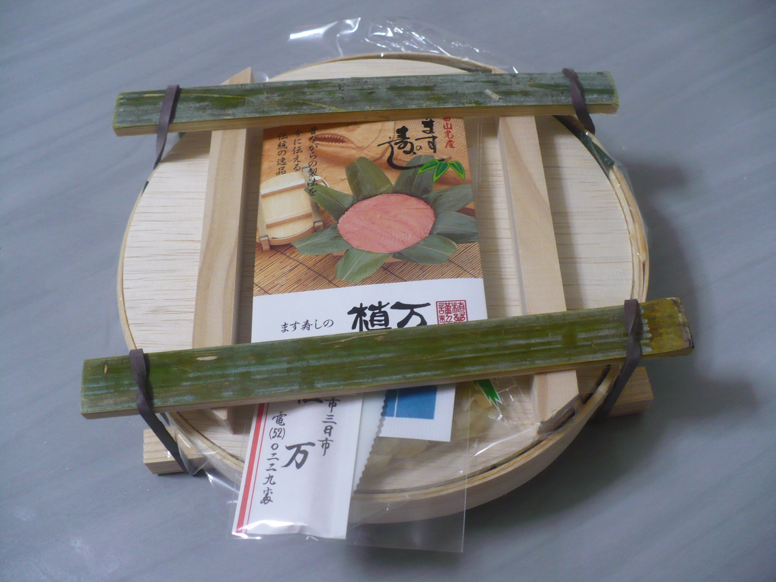 今日の酒の肴は、こちらも友人が富山に旅行に行ったお土産に頂いた、富山名産の鱒寿しです。この鱒寿しは黒部市の植万と言う会社が製造しています。