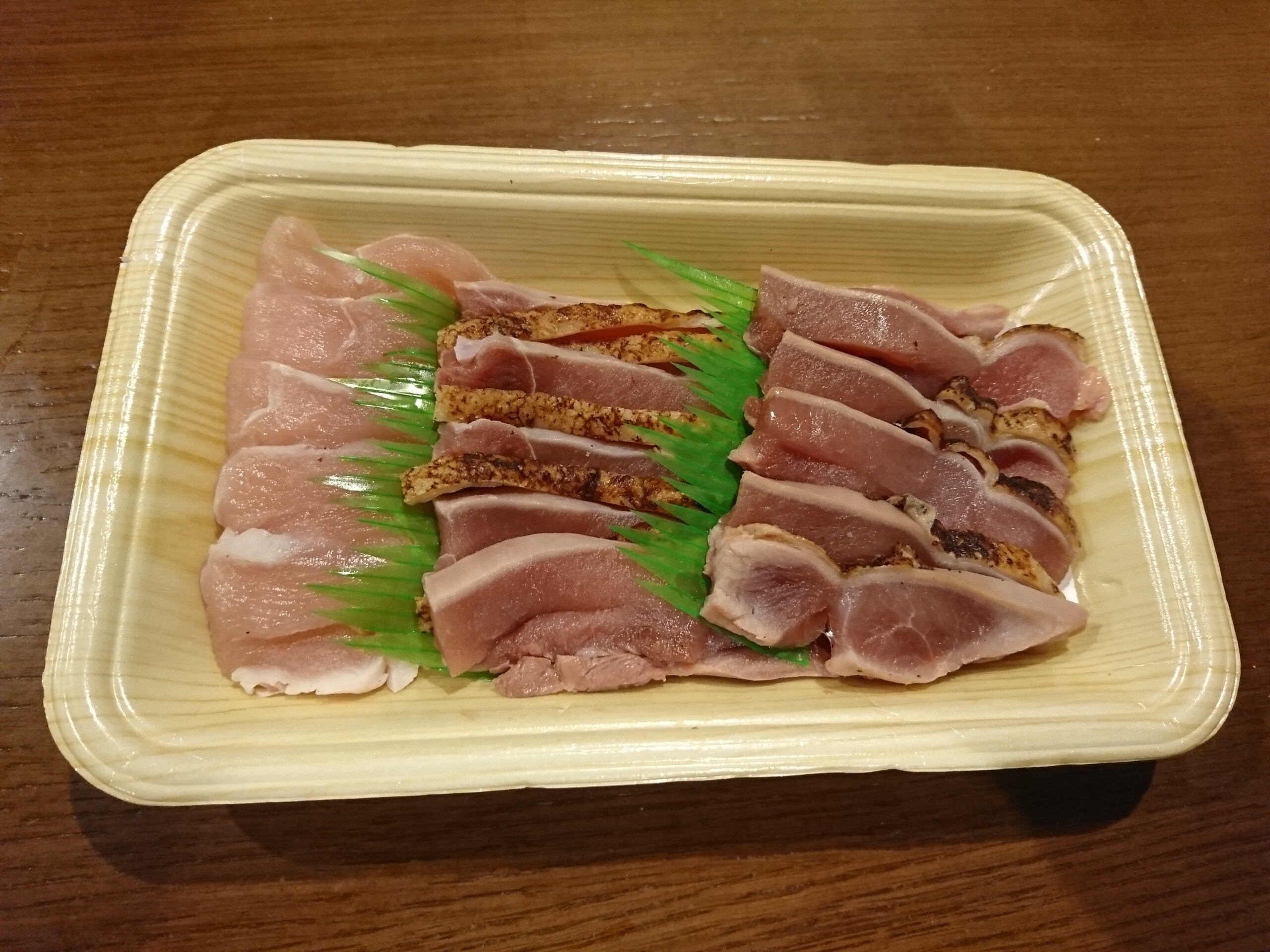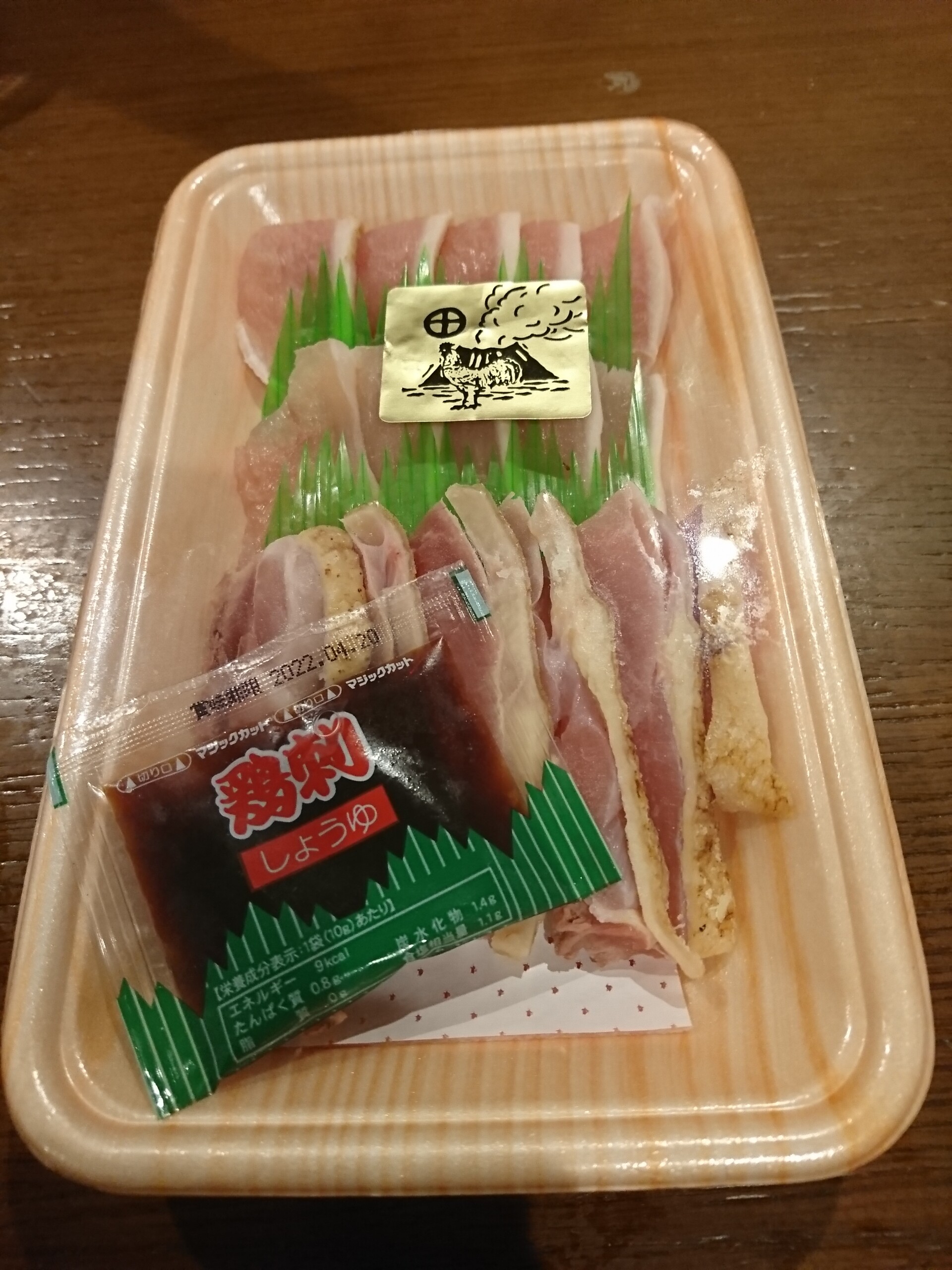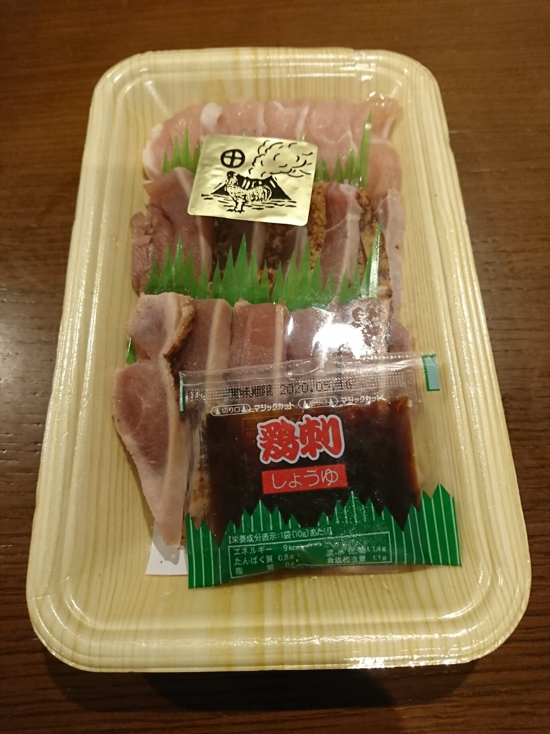 今日の酒の肴は尼崎市の鹿児島物産で500円で買った、鹿児島市の二幸食鳥が製造する鳥刺しです。