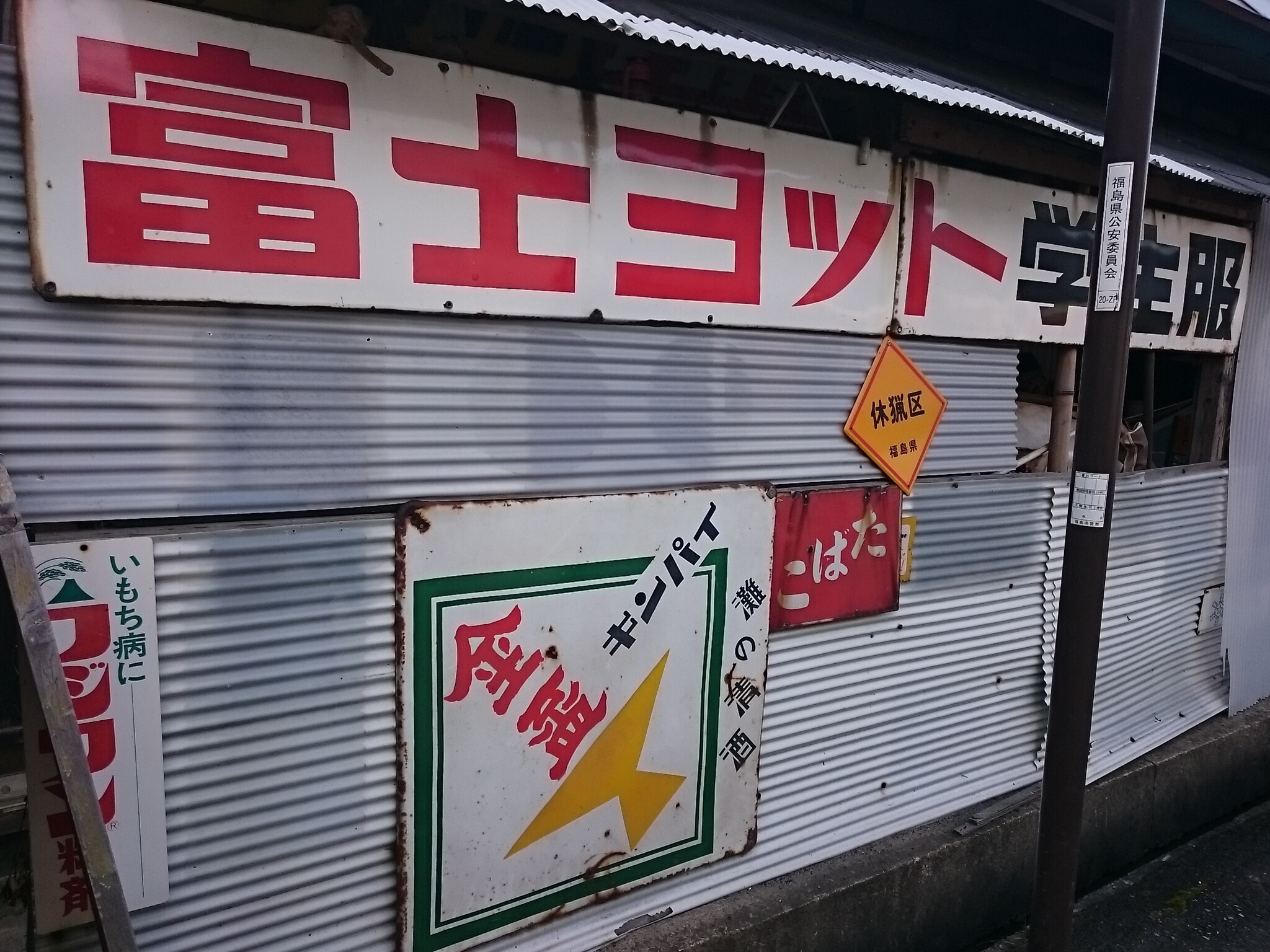 福島県会津若松市内の芦ノ牧温泉近くにある、看板屋敷にあった金盃の琺瑯看板です。レアですねぇ〜