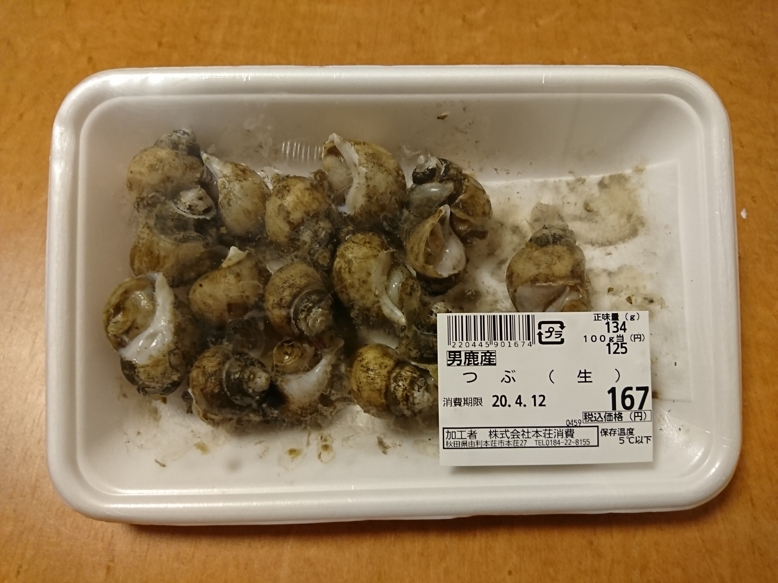 今日の酒の肴は由利本荘市内にある人気スーパー・本荘消費で167円で購入した、秋田県の男鹿産のつぶ貝です。